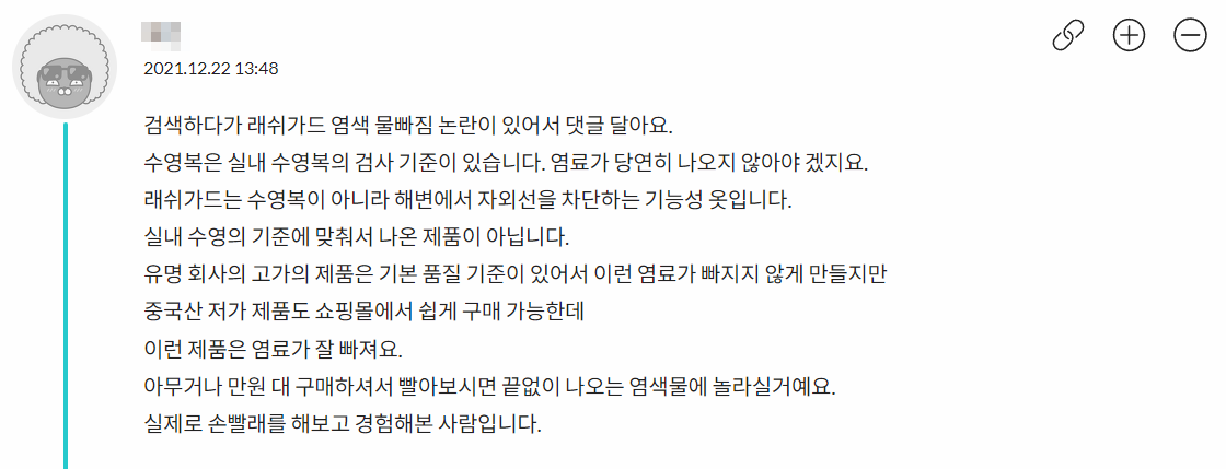 수영장 관계자가 어찌어찌 이 블로그를 찾아와서 근거없는 뇌피셜을 달고 있는데 그래서 아레나,레노마,엘르 등등 일반브랜드의 래쉬가드수영복(현장에선 '래쉬가드수영복'이라고도 부르고 검색해보면 이렇게 판매되고 있기도 하다)이 물이 빠진다고 하고 싶은 건가?