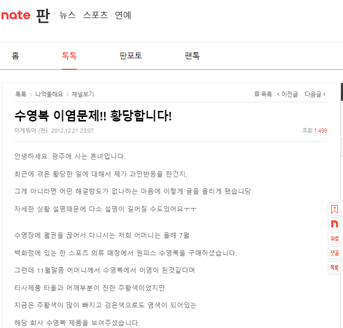 아래는 수영복 이염사례를 찾아 스크랩해 본 것이다.