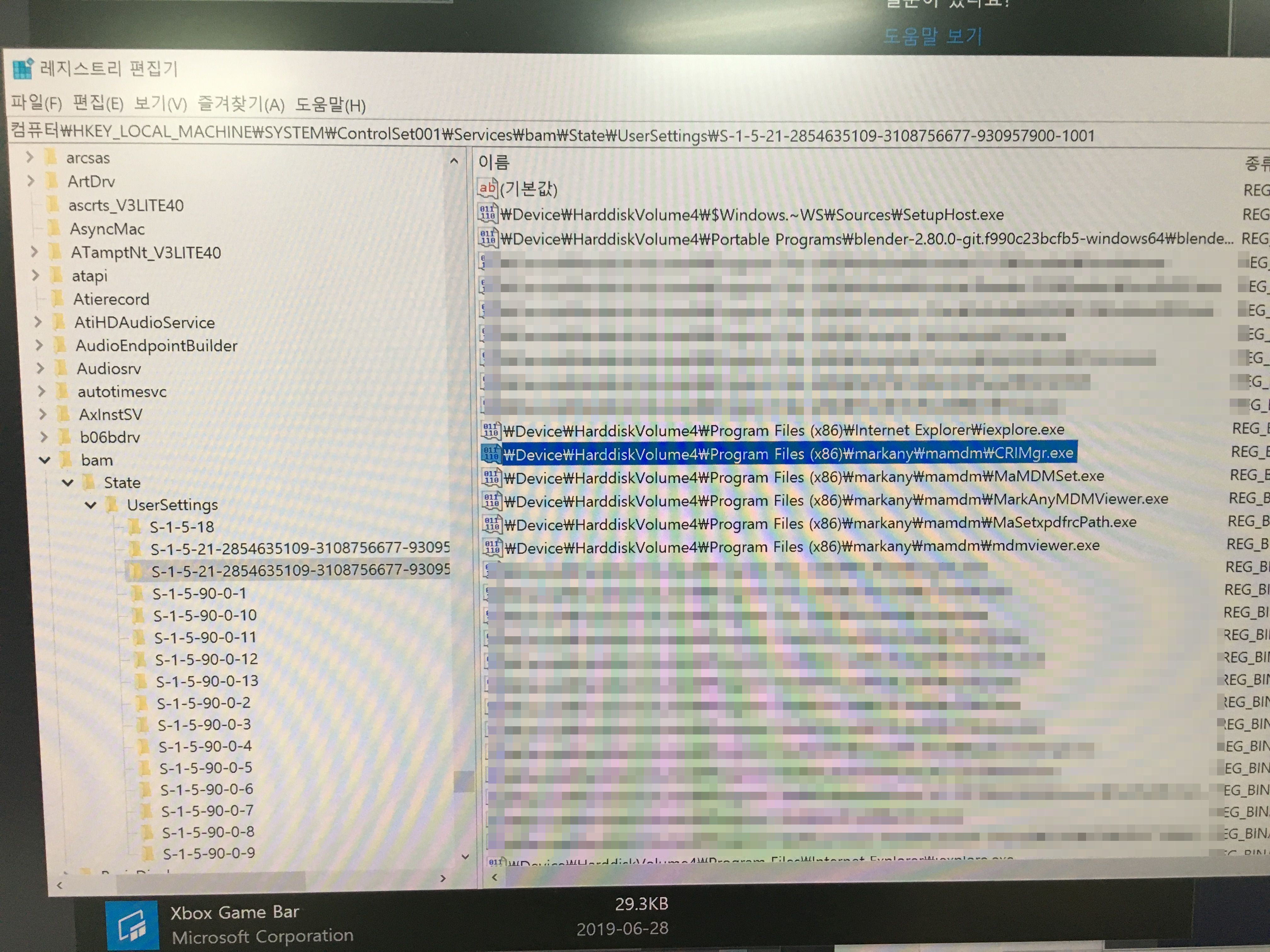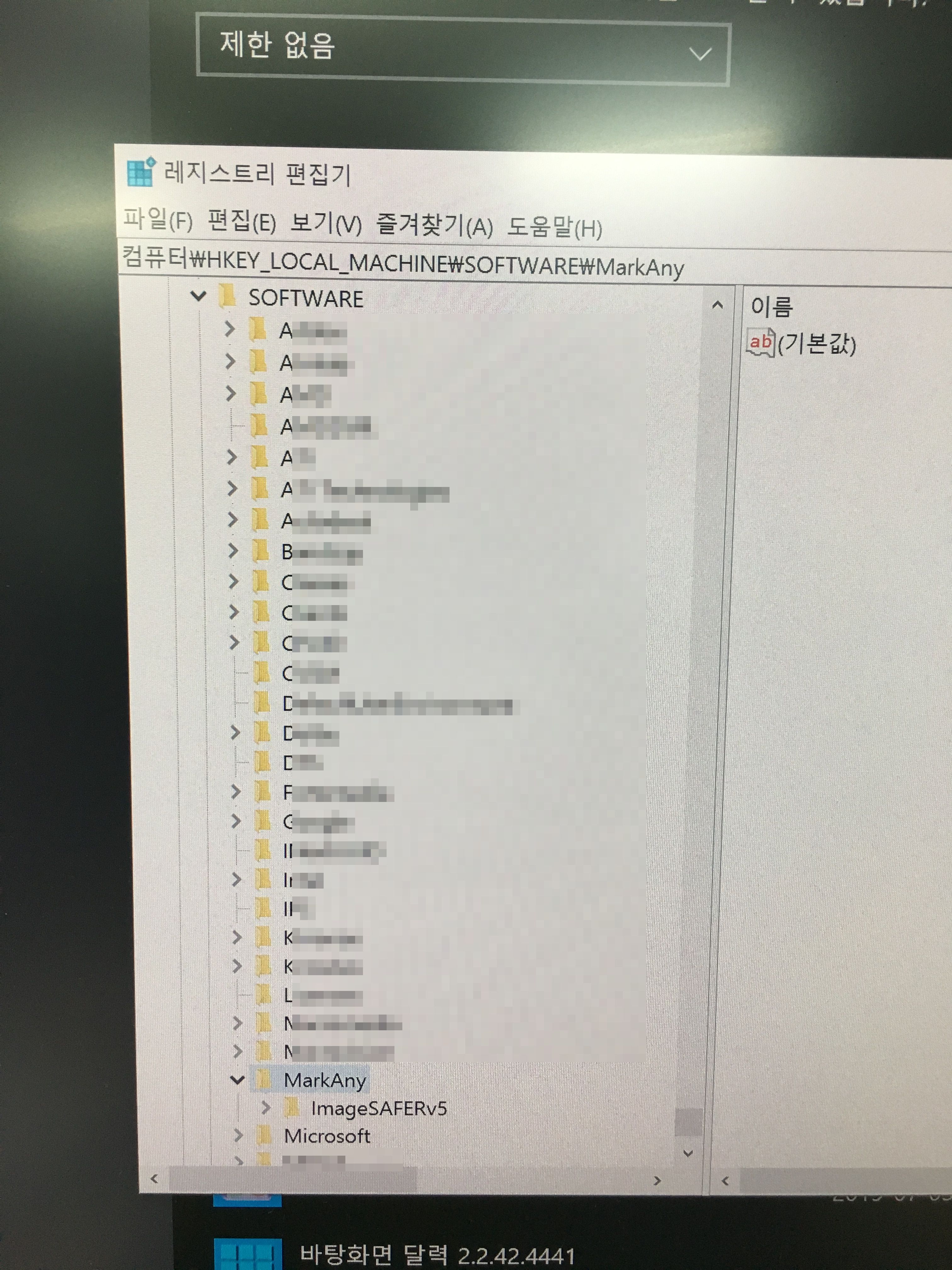 이렇게 삭제를 어렵사리 진행하고, 혹시나 싶어 Regedit에서 Mark any 키워드로 검색을 해봤더니, 역시나 레지스트리를 설치전으로 복원하지 못하고 많이 남아있었다. 아래 사진들은 그 중 일부를 캡쳐해 본 것이다.