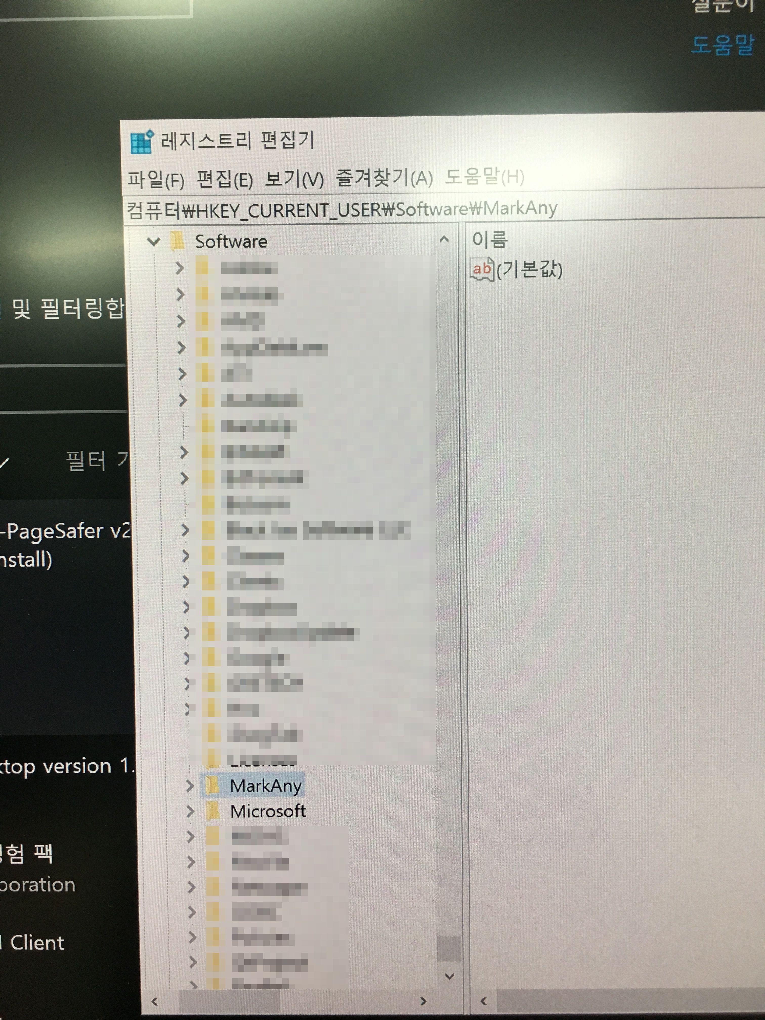이렇게 삭제를 어렵사리 진행하고, 혹시나 싶어 Regedit에서 Mark any 키워드로 검색을 해봤더니, 역시나 레지스트리를 설치전으로 복원하지 못하고 많이 남아있었다. 아래 사진들은 그 중 일부를 캡쳐해 본 것이다.