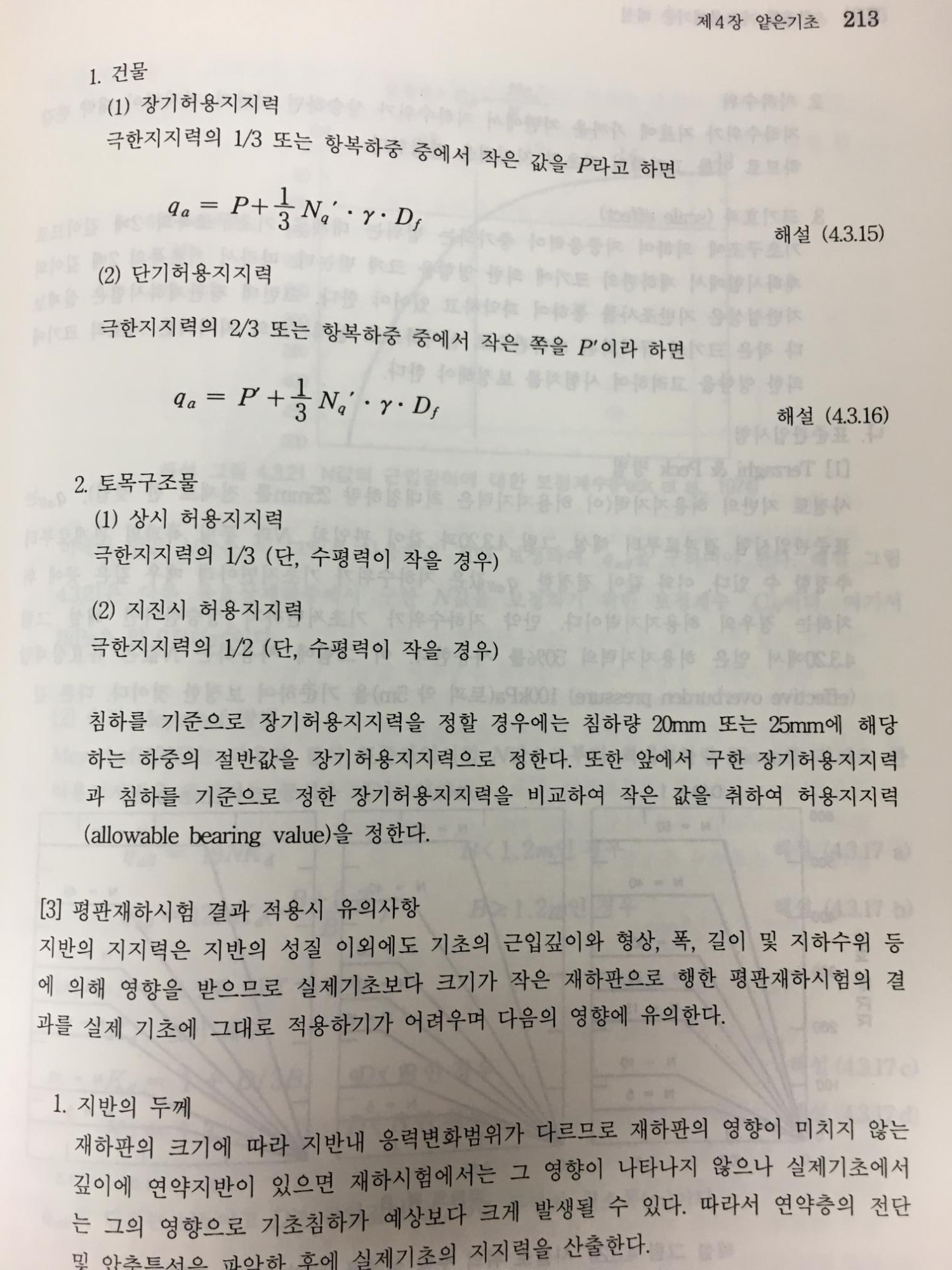 > > terzzaghi식은 비현실적인 부분이 있는지 계산서상의 지지력 상한값이