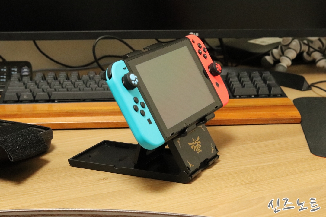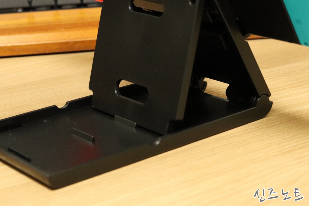 사용해보니 꽤 안정적으로 스위치를 거치할 수 있었다. 거치되는 받침의 길이가 충분했기 때문에 스위치 뿐만 아니라 다른 모바일기기들(태블릿, 핸드폰 등등)도 거치가 가능했고 그들 대부분이 USB C 타입 충전케이블이었기 때문에 충전도 같이 할 수 있었다. Z라는 문양은 약간 거슬릴 수 있지만 기기를 올려놓으면 안보이기 때문에..^^; 그리고 원래대로 접으면 휴대도 용이해지는 점도 좋았다.