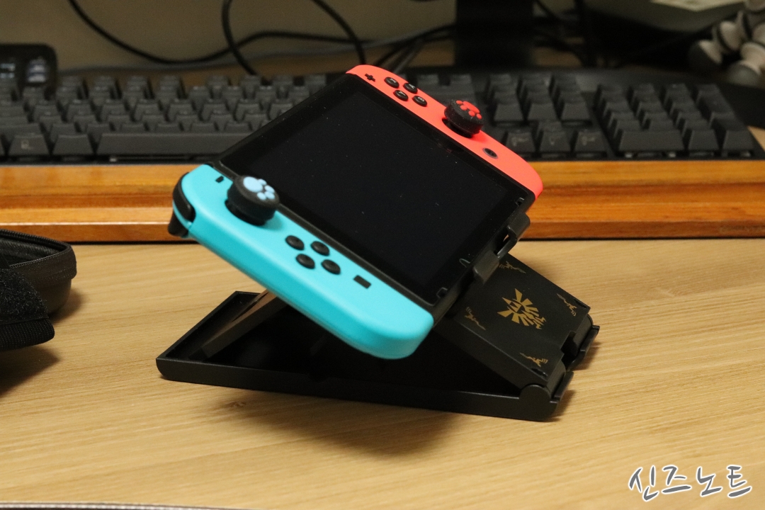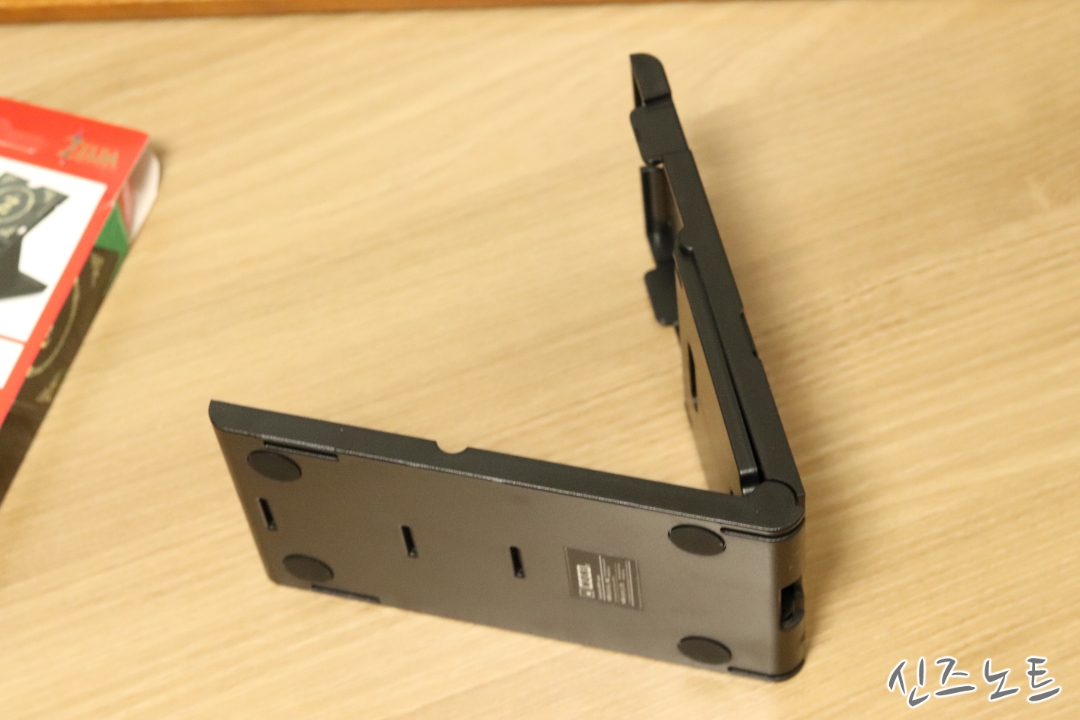 사용해보니 꽤 안정적으로 스위치를 거치할 수 있었다. 거치되는 받침의 길이가 충분했기 때문에 스위치 뿐만 아니라 다른 모바일기기들(태블릿, 핸드폰 등등)도 거치가 가능했고 그들 대부분이 USB C 타입 충전케이블이었기 때문에 충전도 같이 할 수 있었다. Z라는 문양은 약간 거슬릴 수 있지만 기기를 올려놓으면 안보이기 때문에..^^; 그리고 원래대로 접으면 휴대도 용이해지는 점도 좋았다.