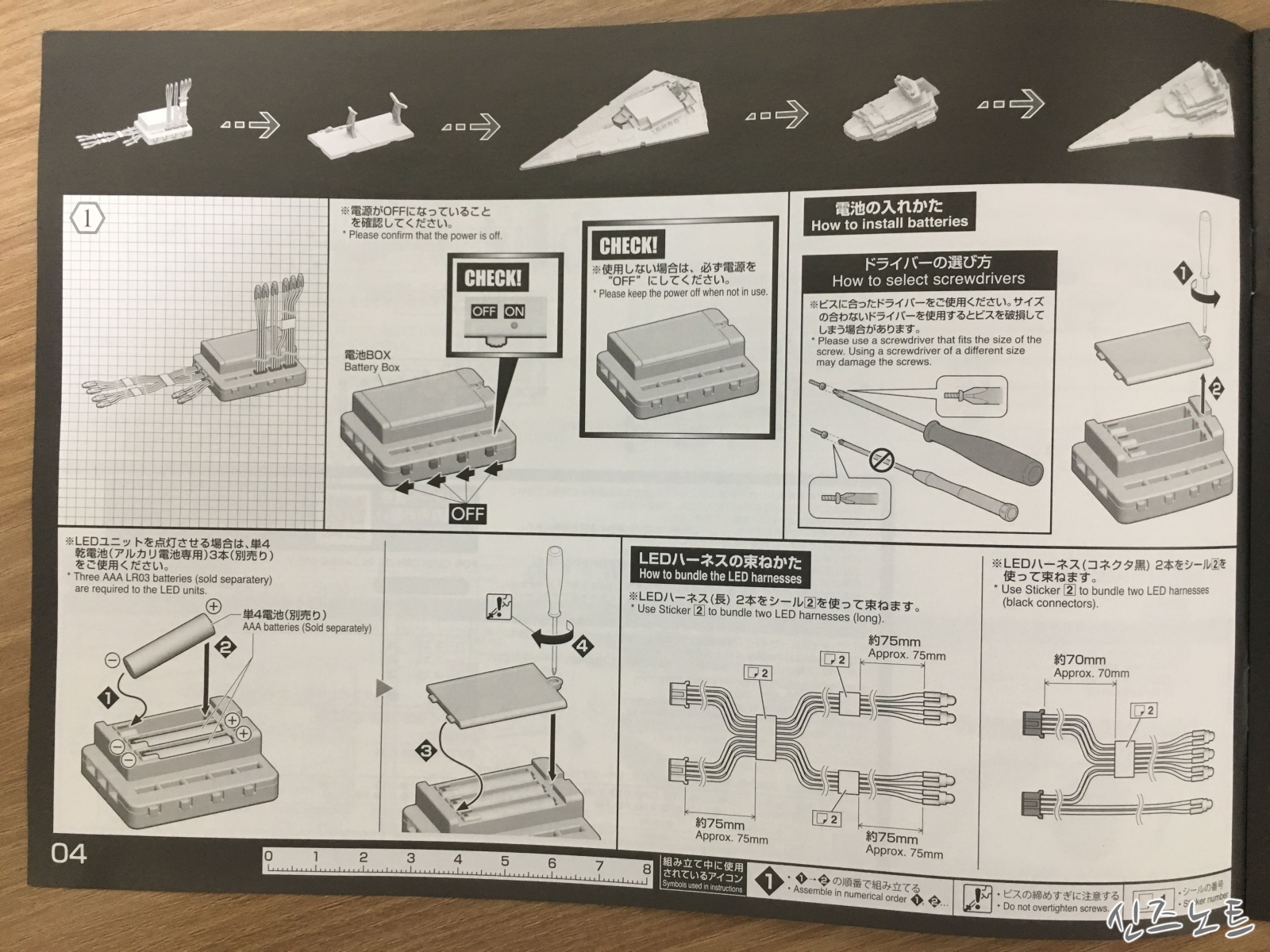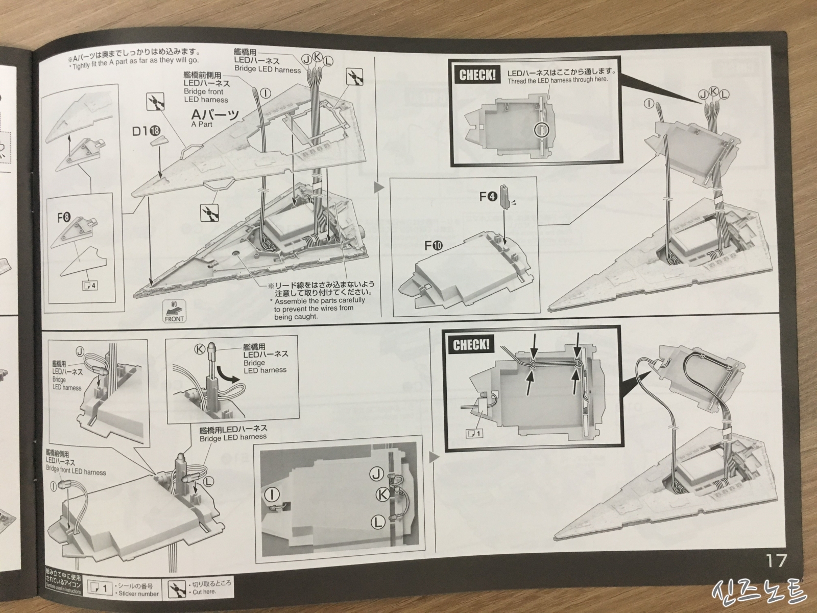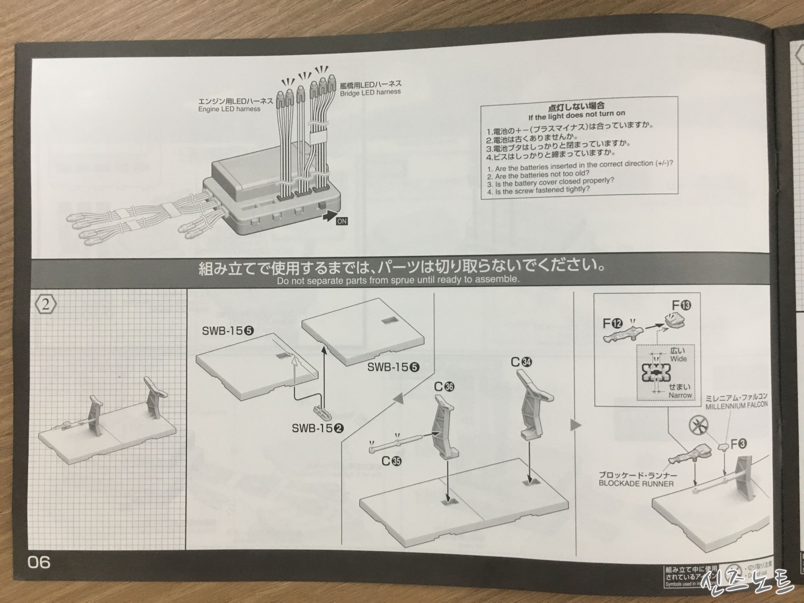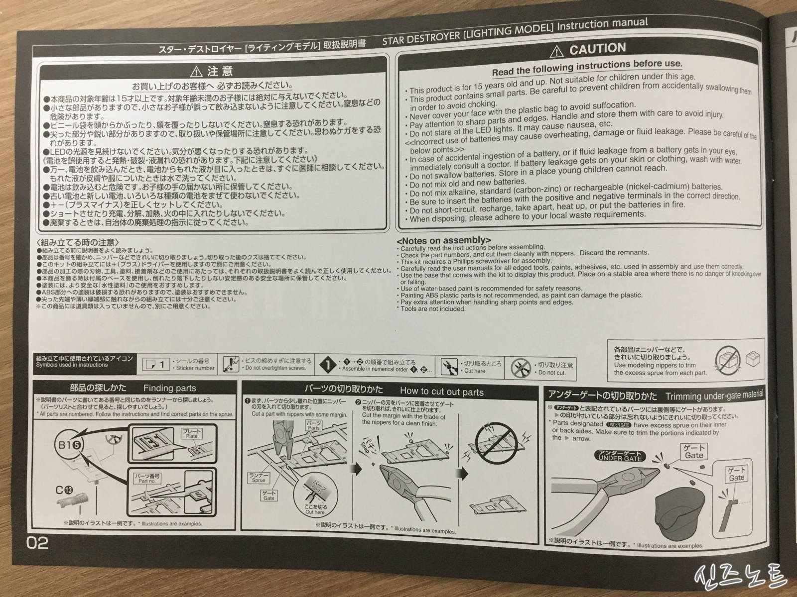 소감은 일단 생각보다 부품의 수가 적었고, 조립설명서에 LED 모듈, 배선 부분을 읽어보니 앞이 캄캄했으며, 디테일과 패널라인들을 보노라면 이걸 언제 먹선워싱을 하나..하는 압박감이 몰려왔다. 하지만 광섬유 작업을 할 게 아니면 어짜피 라이팅 모델로 가야하는 수 밖에 없었을 것이므로 작업을 시작해보기로 한다.