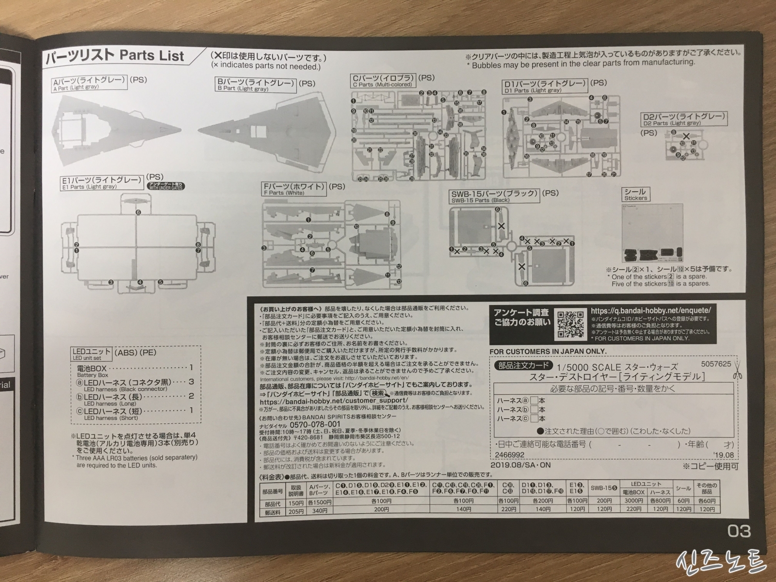 우리나라에 물량이 풀린 건 2019년 9월 초 정도인데 판매점마다 들어오는 시기가 다른 듯 하다. 대부분의 인터넷 쇼핑몰에서 사전예약이 매진된 상태에서 물량이 풀려서 그런지 오프라인이나 예약잔여분은 찾기 힘들었다. 일부 오프라인 매장에서 반다이 코리아 정식 수입이 아닌 다른 루트로 들어온 물량이 뒤늦게 풀리기도 했다. 하여튼 말도 많고 탈도 많은 발매였던 것 같다. 나는 라이팅 모델 초회한정판을 구매했다. 초회한정판은 일반판에 LED유닛과 추가 클리어파츠, 그리고 무슨 매뉴얼 같은 게 추가로 들어있다고 한다.