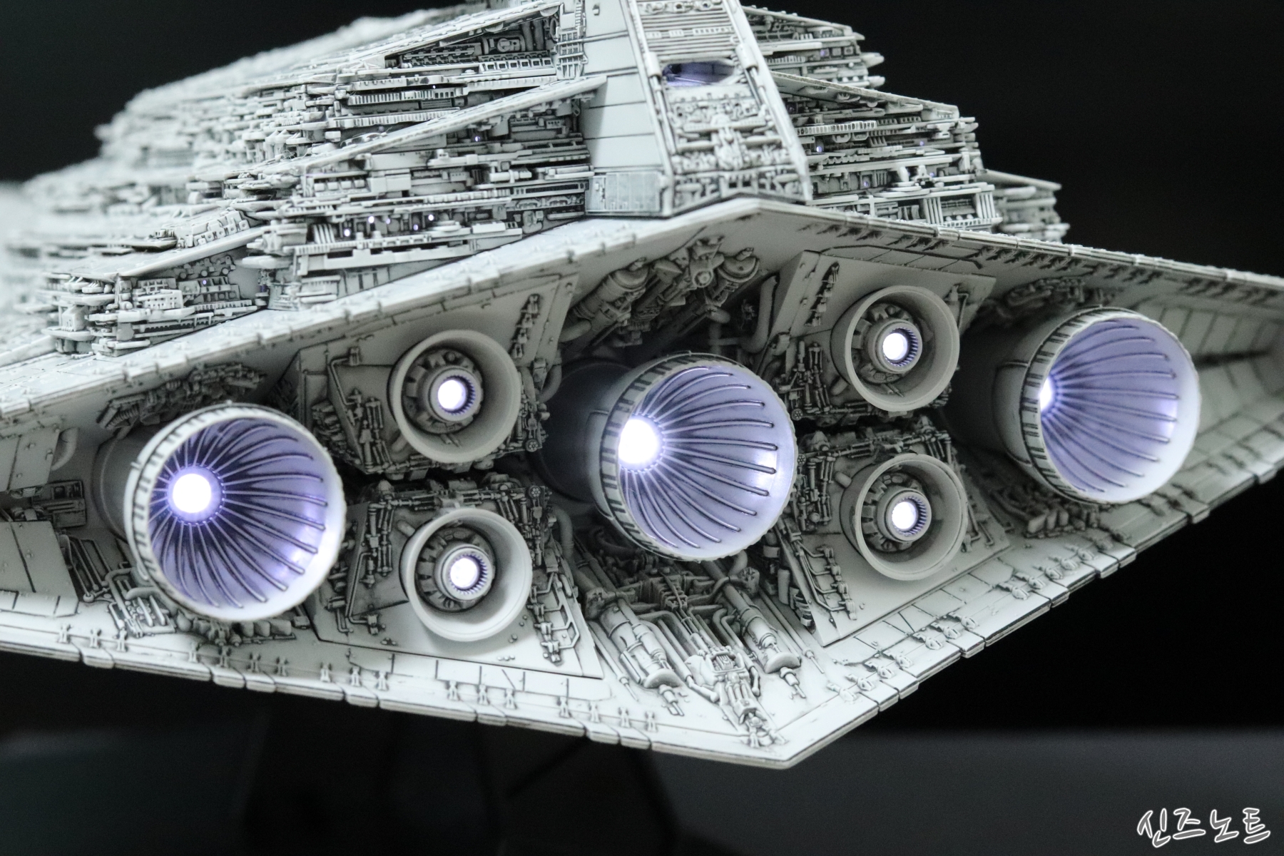 스타디스트로이어에 불이 나오게 하는 방법은 광섬유의 정공법으로 가느냐, 또는 LED 유닛을 이용한 라이팅 모델을 이용하느냐 크게 두 가지 방법으로 나눌 수 있다. 하지만 광섬유를 만진다는 것은 전원에 대한 기본적인 전기상식도 있어야 함을 뜻한다. 즉, 프라모델에 광섬유를 박아 본 경험자가 아니면 광섬유의 방법을 선택하는 것은 무리일 것이다. 따라서 결국 일반 라이트 모델러의 선택은 라이팅 모델을 이용하는 수 밖에 없는데, 이후에 설명할 여러 단점에도 불구하고 라이팅 모델이 정말 예쁘다. 아니 멋있다!! 들이는 노력에 비해 나오는 성과물에 대한 만족도가 큰 킷이라고 생각한다.