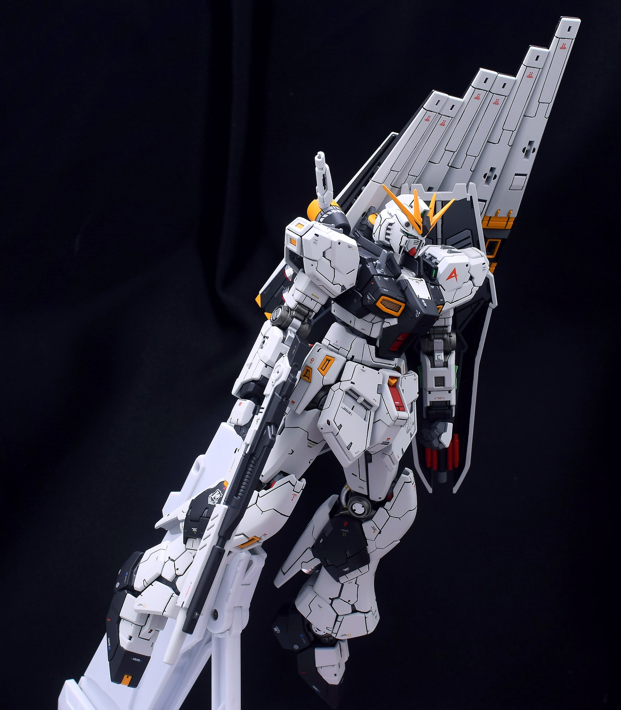 이제까지 봤던 RG 뉴건담 작례 중에 가장 깔끔하고 반듯한 작례인 것 같다. 특히 패널라인 부분은 이 킷을 만들어 본 사람이라면 모두 느꼈을 '패널라인의 아쉬움'을 완벽하게 극복했다. 일일히 이렇게 패널라인을 파주는 것이 쉬운 일이 아니었음에도 정말 잘 마무리한 것 같다.