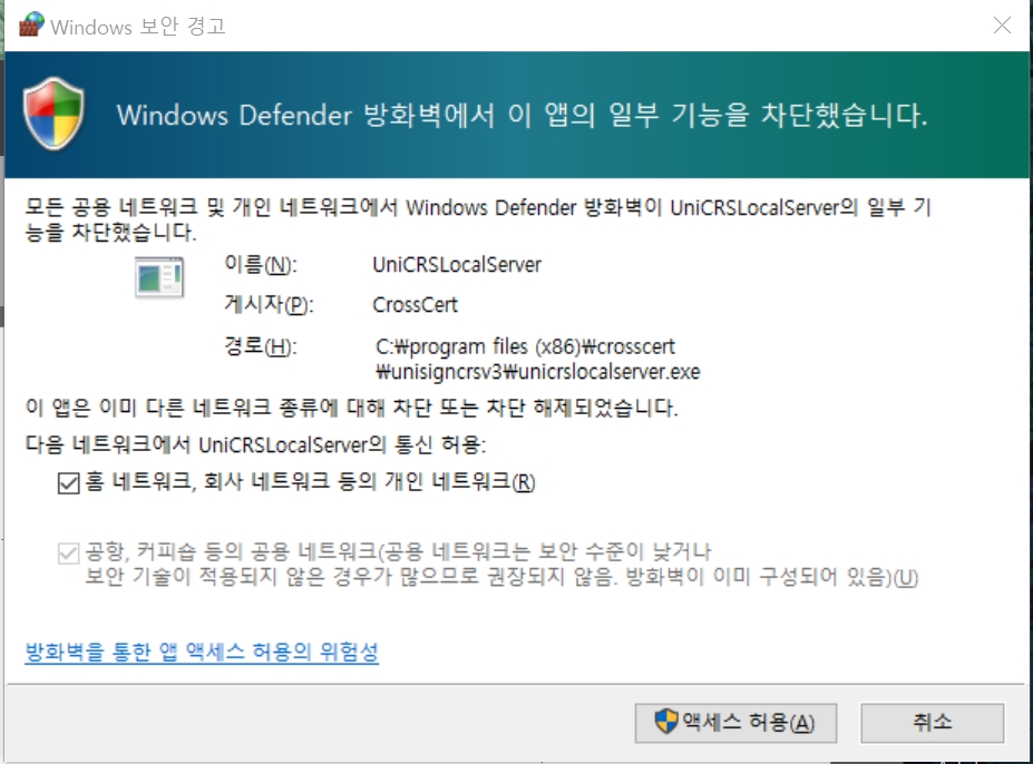 깔려있는 앱 중에 CROSSCERT UniCRSV3 2.0.6.0 이 설치되어 있는데 제거를 해보았다.