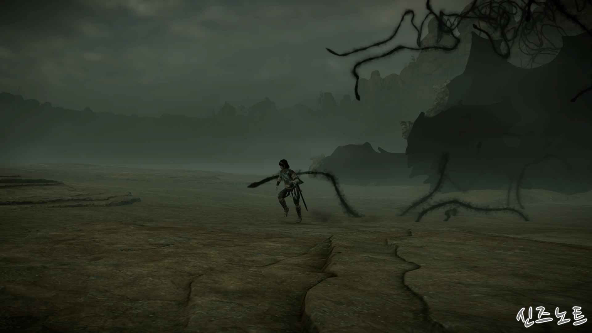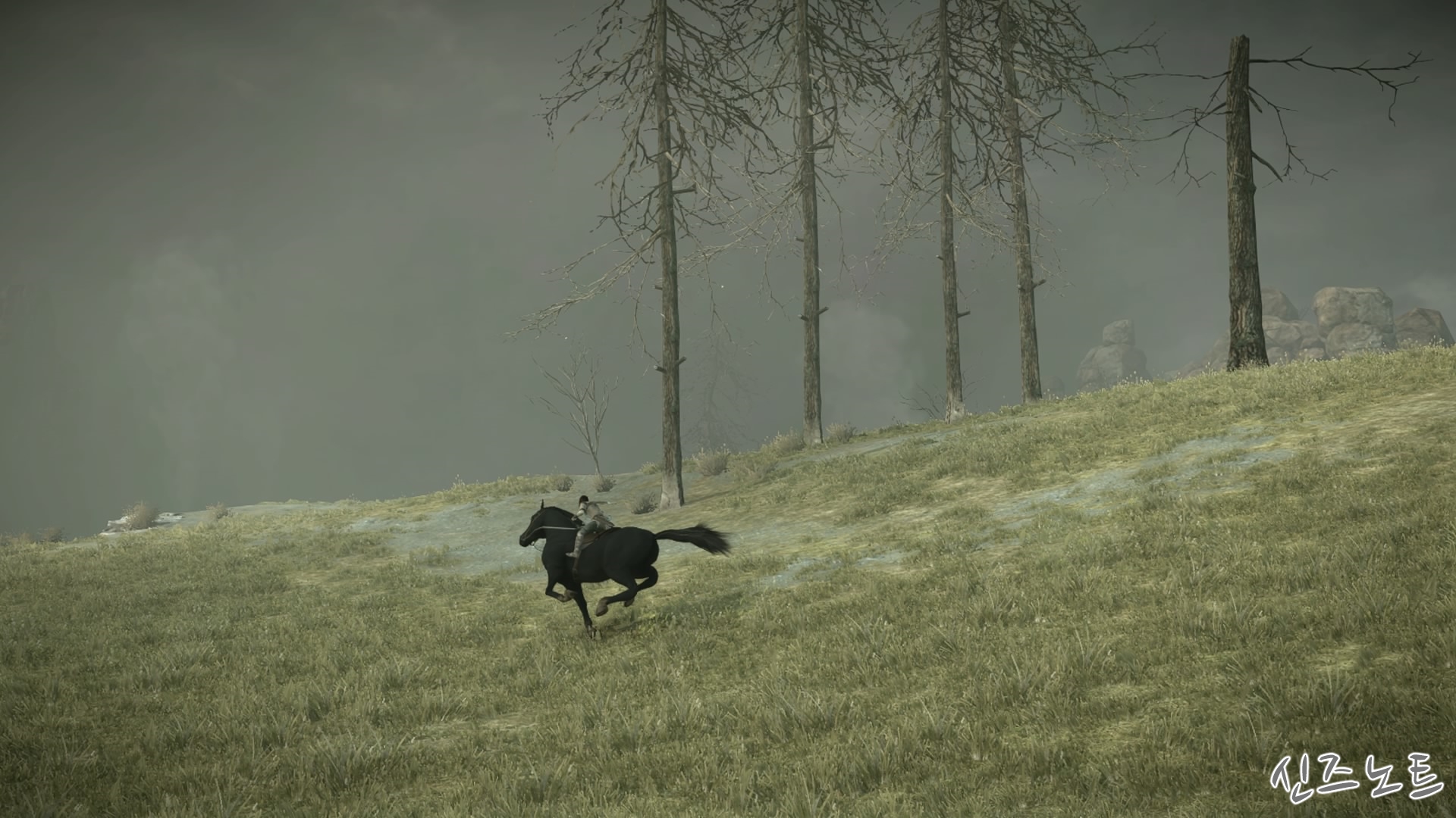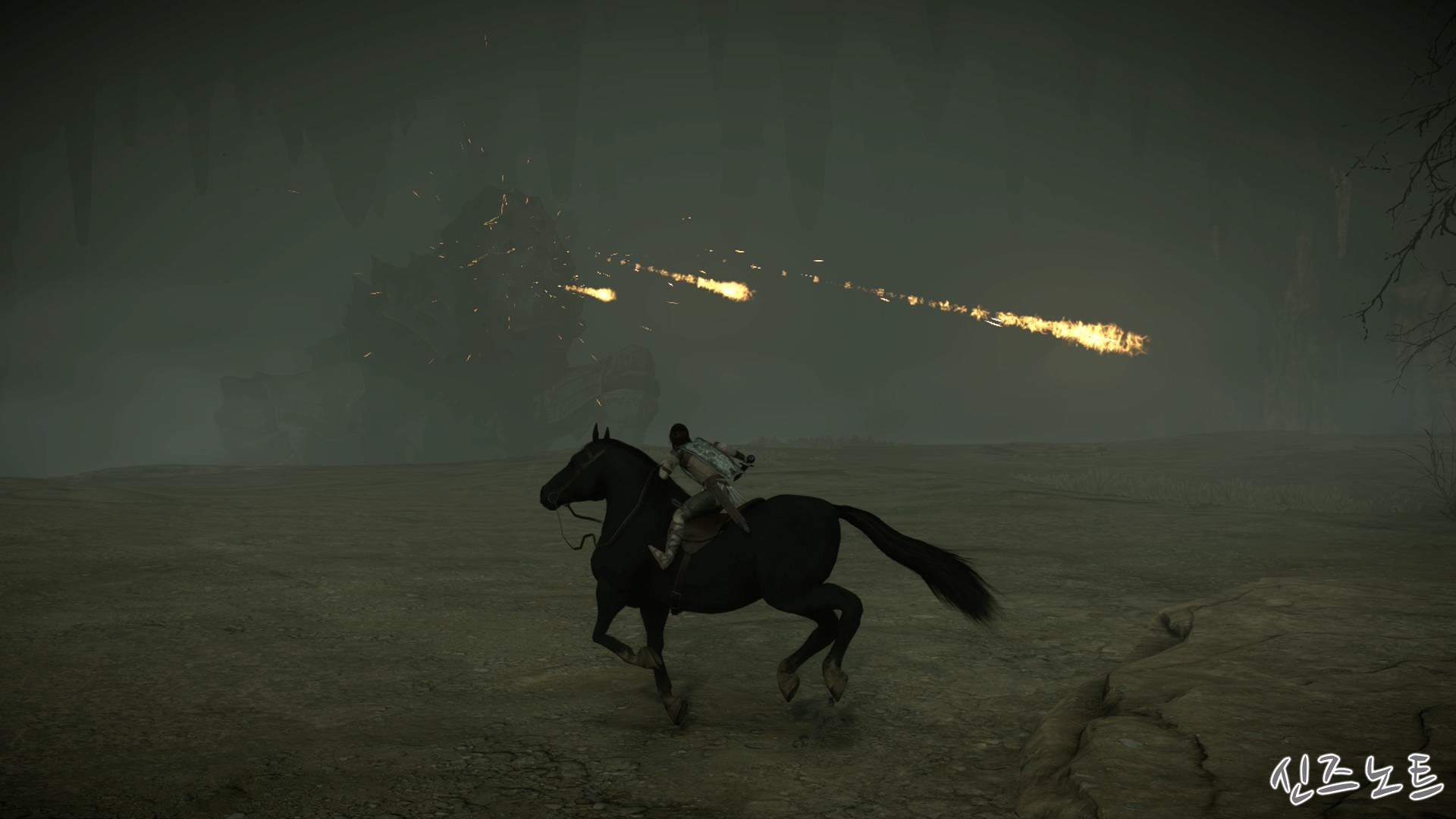 Grab on to the colossus's tail...(거상의 꼬리를 잡아라...)