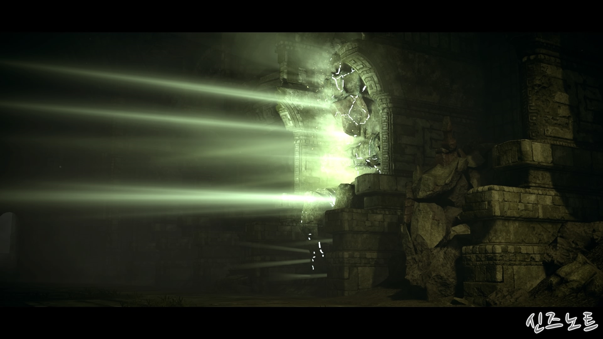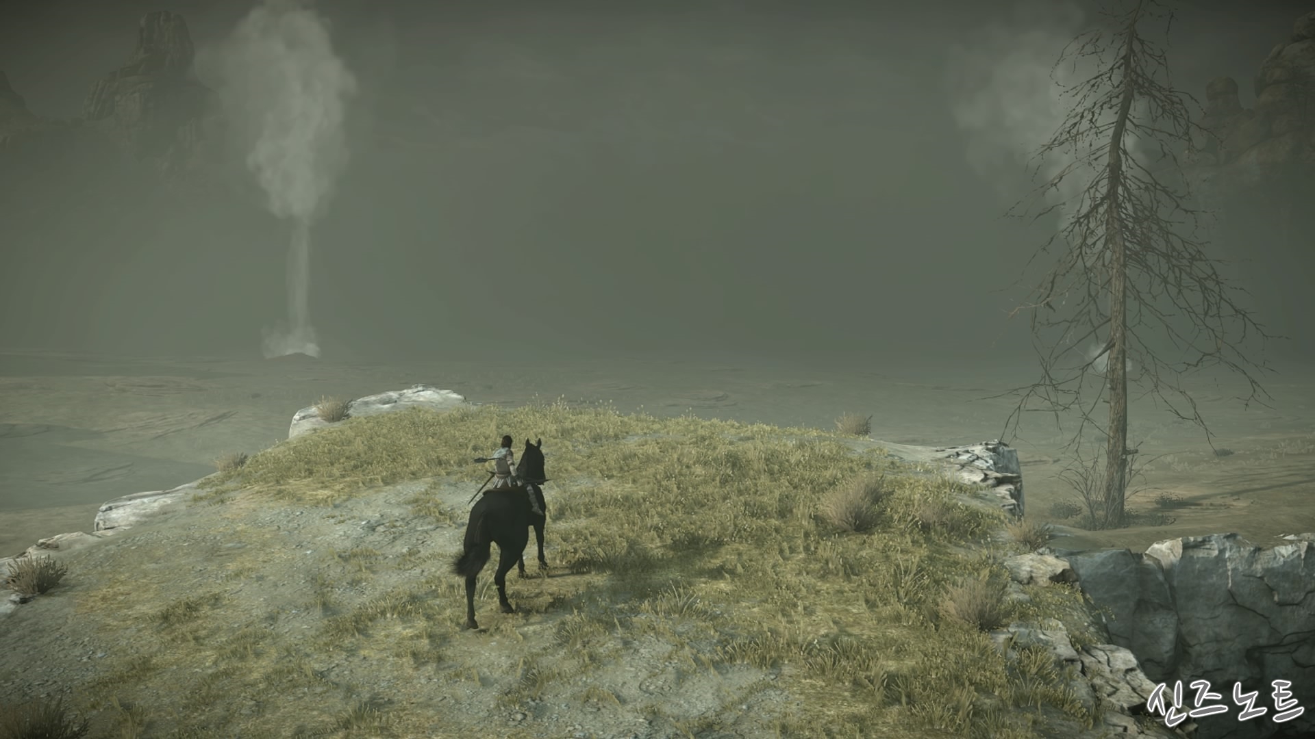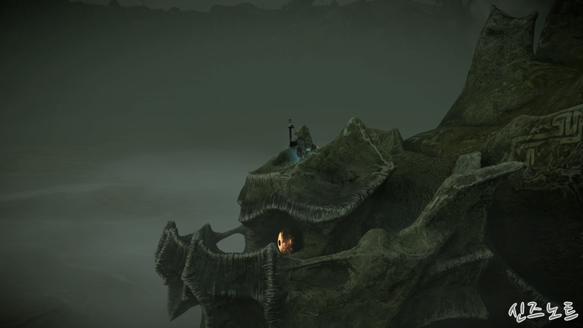 Swim on the lake surface to draw out the colossus...(거상을 유인하려면 호수 위에서 헤엄쳐라...)