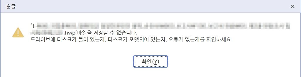 그리고 NAS에서 네트워크로 여러명이 함께 문서작업을 할 때, 내가 편집하고 있는 파일을 다른 사람이 열면 그 사람은 당연히 읽기전용으로 열리지만 그동안 내가 그 파일을 저장하려고 하면 저장이 되지 않는 치명적인 문제도 있었다. 아래 메세지는 내가 저장을 시도할 때 뜨는 메세지다.