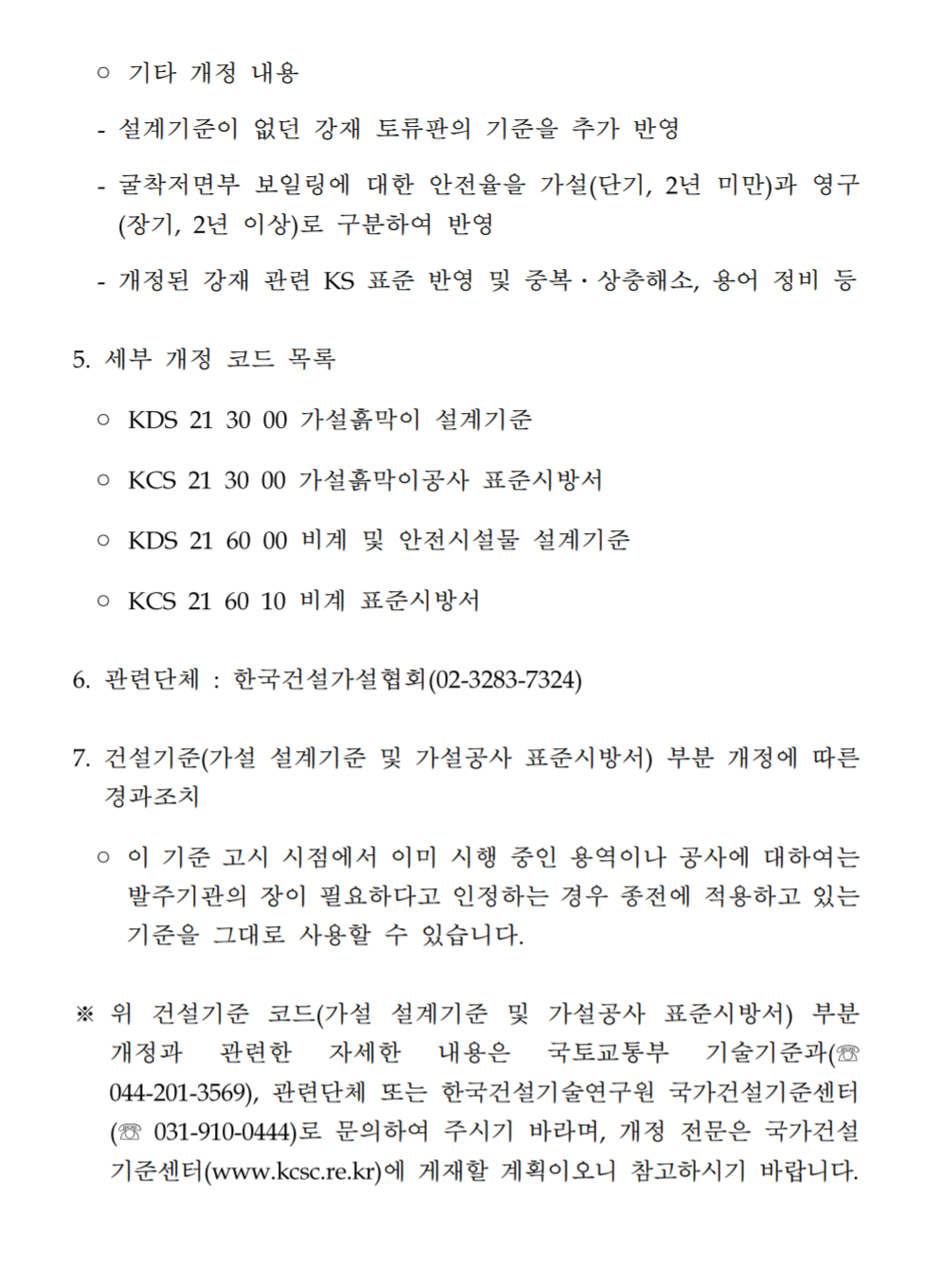 가설흙막이 설계기준 : 국가건설설계기준(KDS 21 30 00 : 2020) 2020년 1월 8일 주요 개정내용