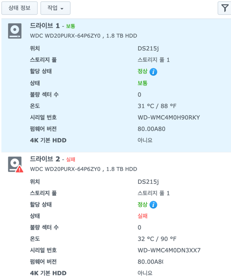 사용하다가 HDD 하나가 고장날 경우, 이를 대비하기 위해 시놀로지 NAS를 구입하는 회사가 적지 않다.