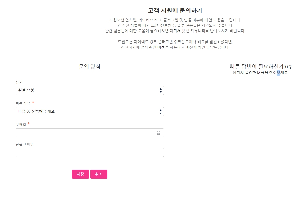 그 다음, 문의하기 유형에서 "환불 요청"을 선택하면 아래의 양식이 나오고 그 양식을 채워넣어야 한다. 여기서 경악할 만한 점은 트윈모션 구매일을 물어보는 것이다. 당연히 언제 트윈모션을 구매했는지는 에픽게임즈 지들이 가장 잘 알고 있을 터, 이것들은 정말 14일 이내에 환불해주지 않으려고 정말 미친 듯한 노력을 하고 있음을 알 수 있었다.