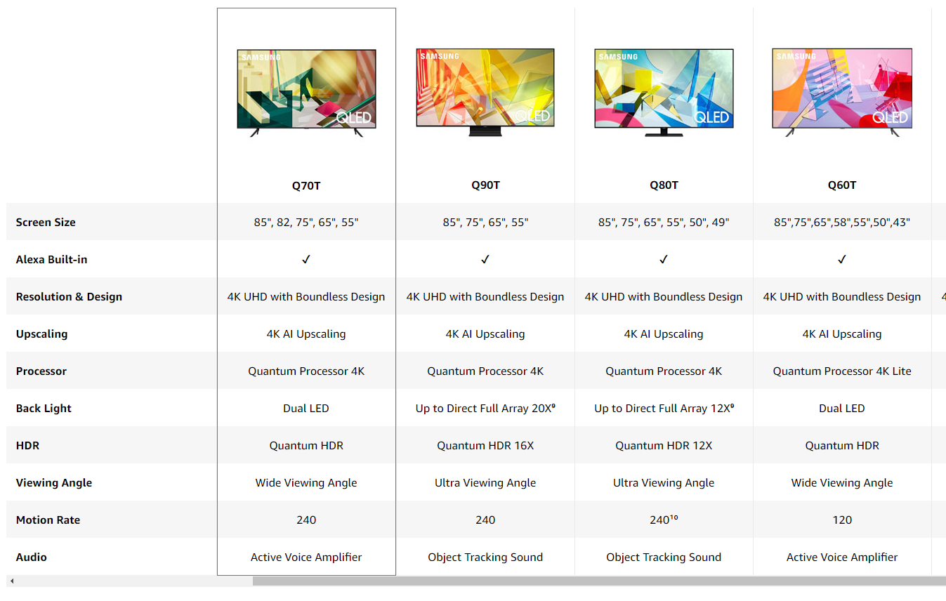 11. 아래 영상을 보니 Q70과 Q80은 차이가 많다고, 근데 CPU는 Q70과 Q80이 같다. Q60이하가 퀀텀 프로세서 4K Lite다.