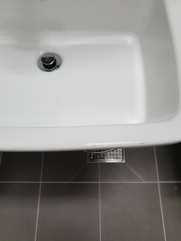-> 욕실 도기 AS팀이 도기용 컴파운드로 자국을 없앴다.