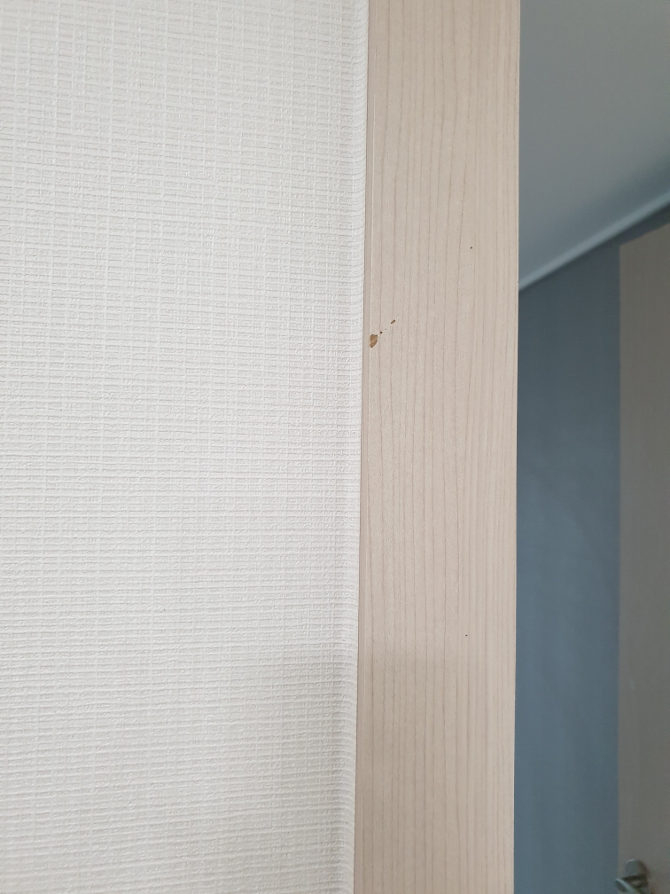 ↑침실1 문틀에 시트지 긁힌 흔적이 있음.