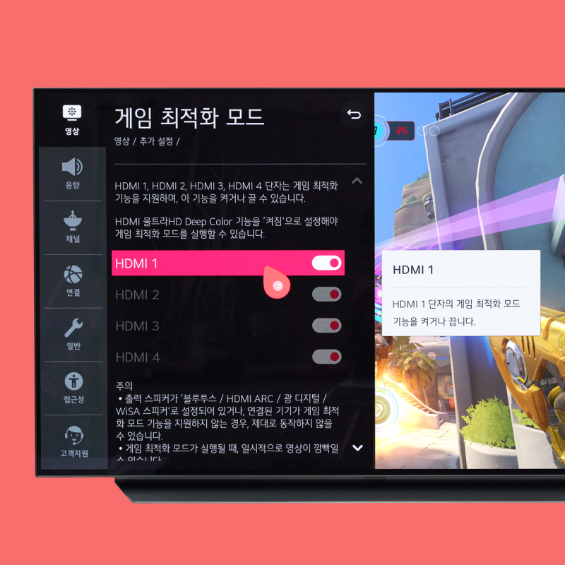 LG TV를 구입한 것은 오랫만이라, 게이밍을 위해서 해줘야 할 세팅은 '게임모드 ON'밖에 없는 줄 알았는데 그게 아니었음.