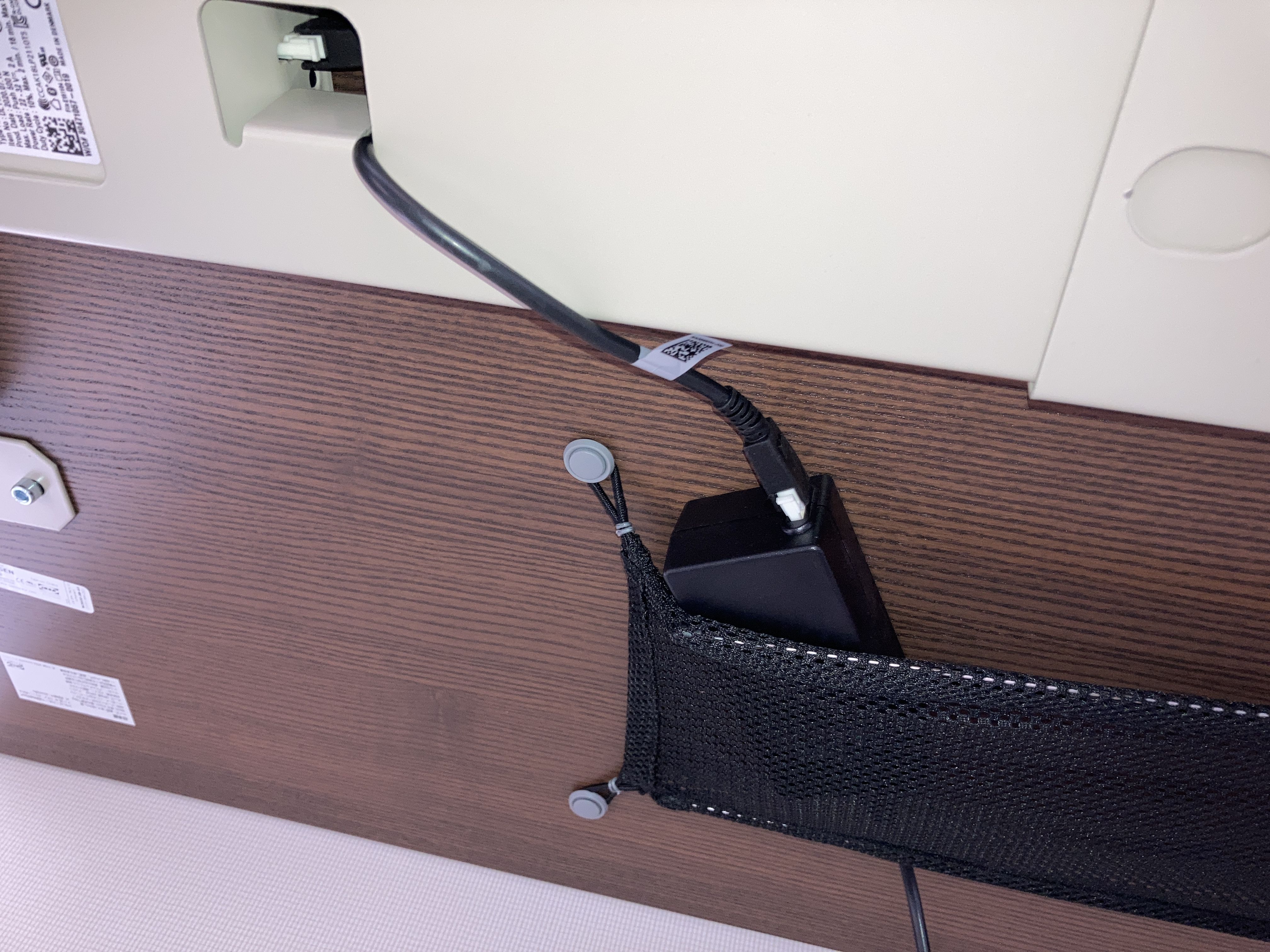 어댑터에 연결되는 저 선의 길이가 짧다.부품번호는 199844.어댑터를 공중에 매달리게 놔둘 수는 없어서 저렇게 망에 살짝 걸치는 정도에서 타협하였다.