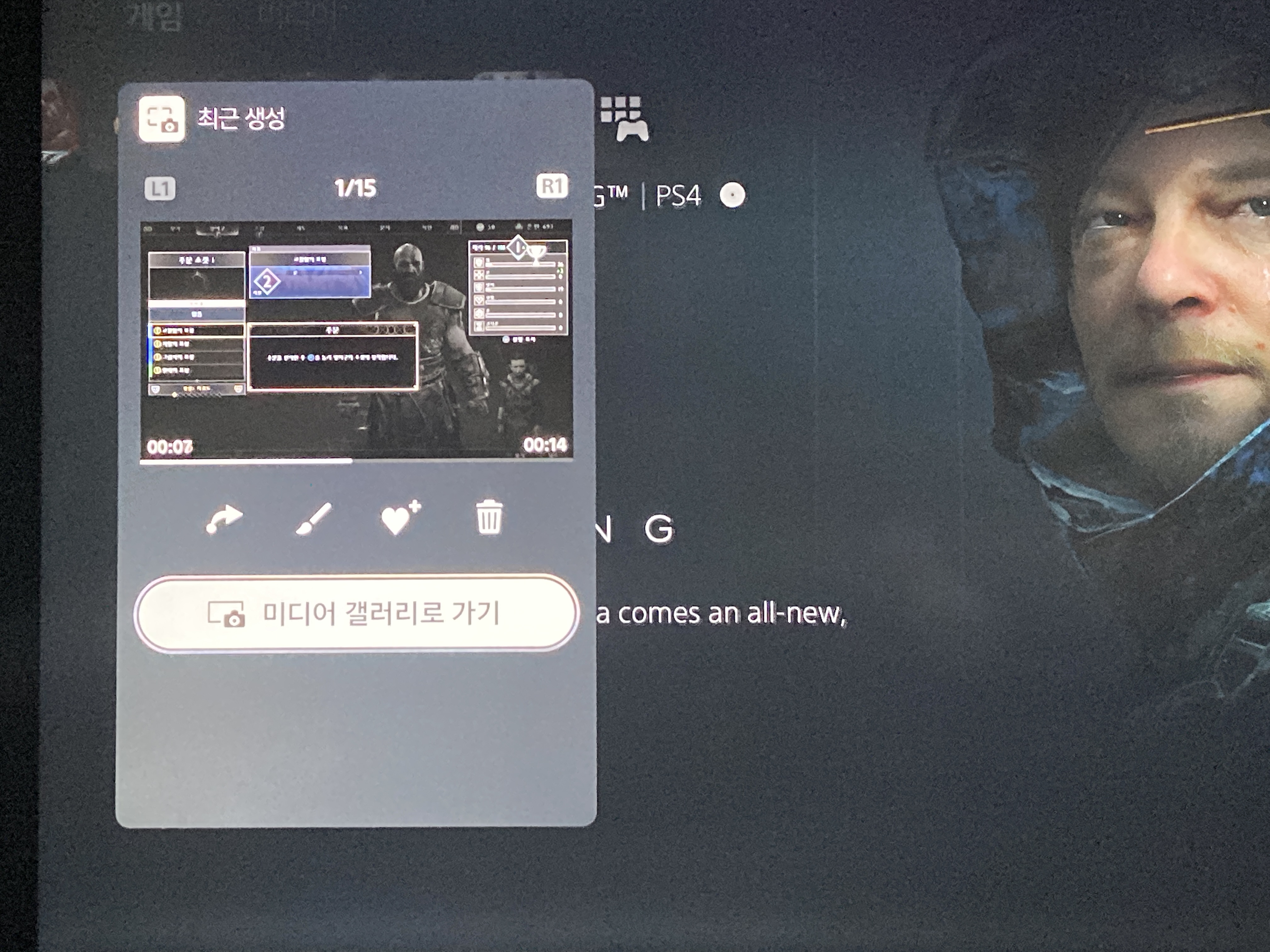 그리고 스크린 샷을 볼 때 잡다한 메뉴를 안보면서 오로지 해당 이미지만 L1 R1으로 넘겨가면서 보려고 했는데 그게 불가능했다. (2020년 12월 기준) 다음 스크린샷으로 넘어가면 이런 메뉴가 또 나오게 되었다.