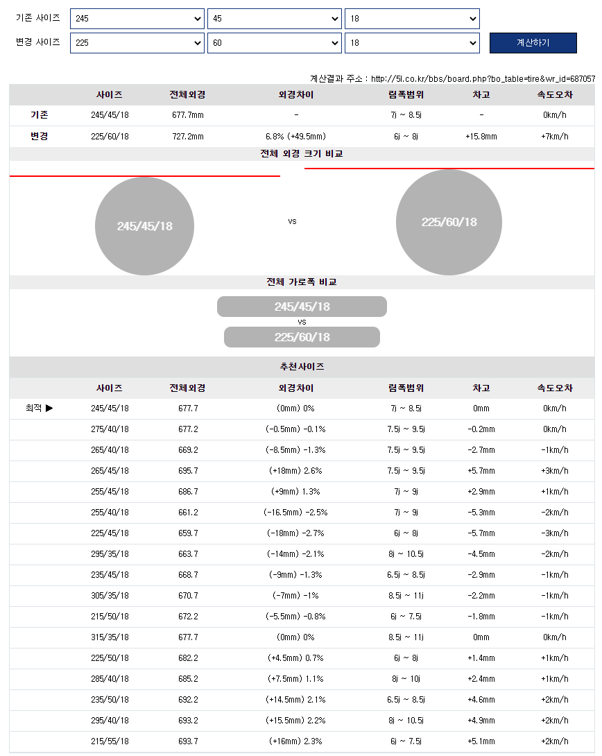 17인치로 가지 않고 18인치 휠에 60시리즈 같은 말랑한 타이어로 바꾼다면 아래 그림과 같이 무리(?)를 해야 하는 상황이 될 것이다.