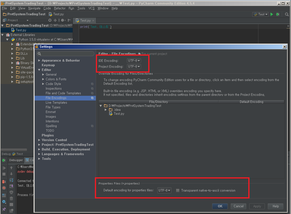 파이참 코딩 중에 한글이 들어가면 에러가 나기 때문에 설정에서 UTF-8을 세팅해주어야 한다.