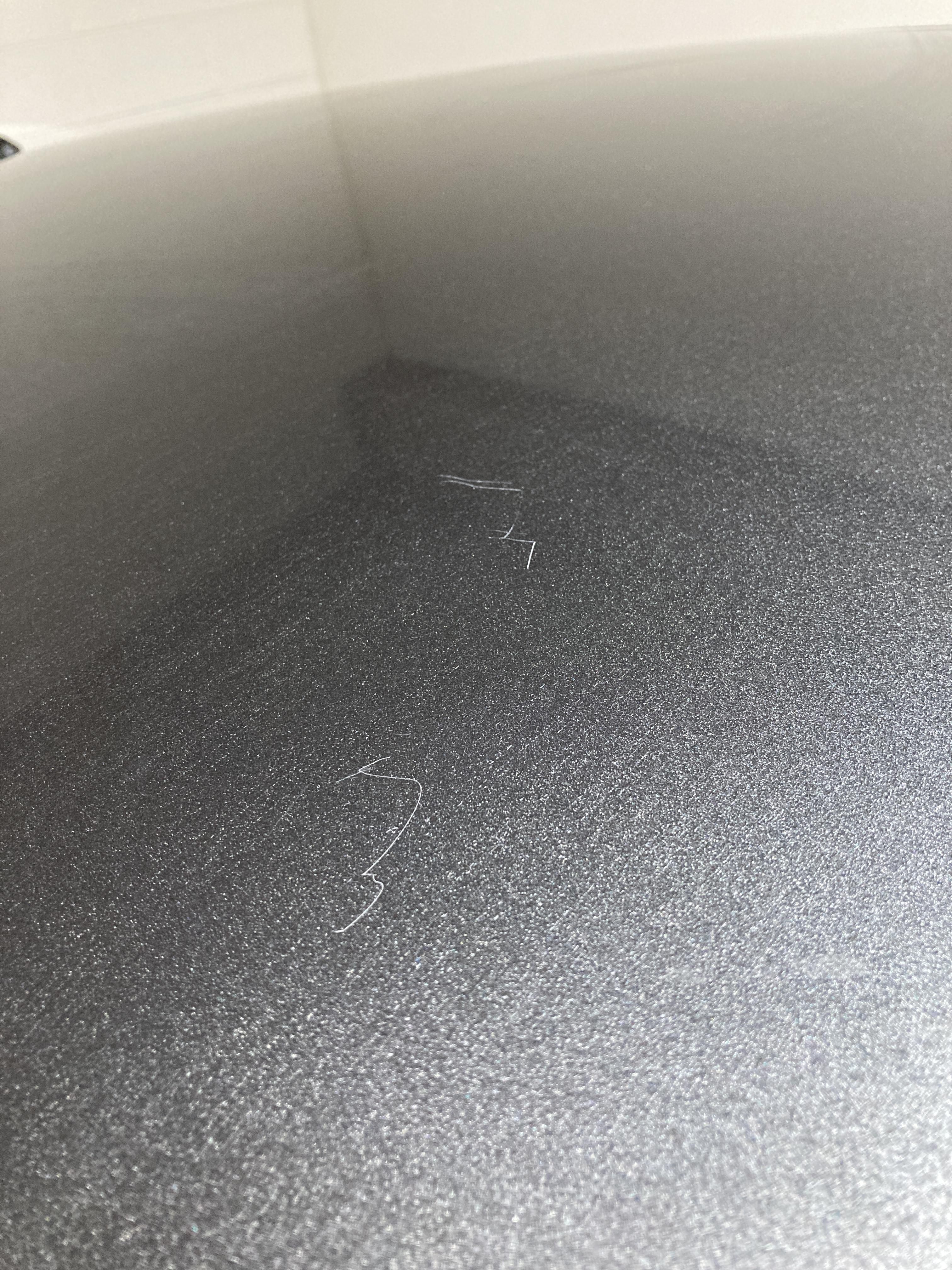 아래 사진은 흑광왁스를 차 위에 올려놓고 상판 왁스칠하다가 생긴 기스자국이다.