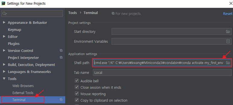 cmd.exe "/K" C:\Users\kwang\Miniconda3\condabin\conda activate my_first_env