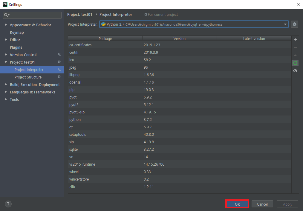 아나콘다 가상환경 설정 및 PyQt5 설치