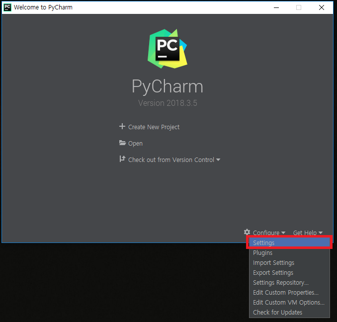 PyCharm을 실행합니다.