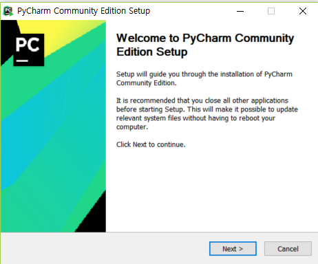 설치할 디렉토리명을 입력합니다.(실습에서는 PyCharm을 입력)