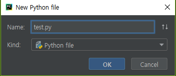 신규 추가할 파일명을 입력합니다.(실습에선 test.py)