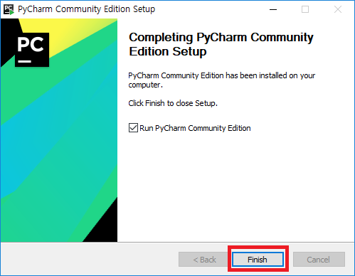 - 파이참 실행하기 체크 후, 설치 종료