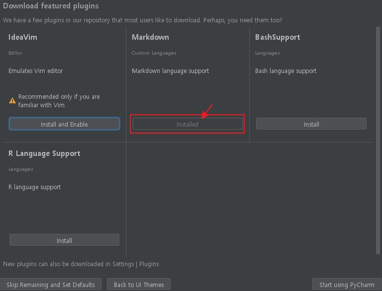 필요한 플러그인을 설치합니다. (실습에서는 Markdown만 설치), vi에디터에 익숙하지 않다면 IdeaVim설치하지마세요.