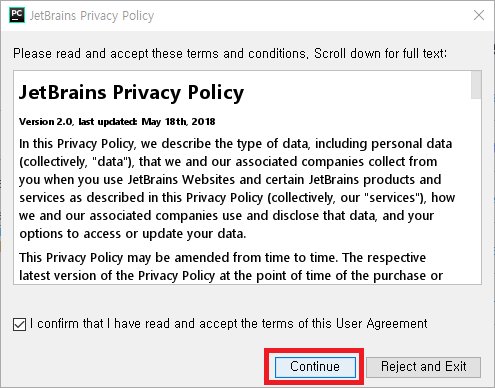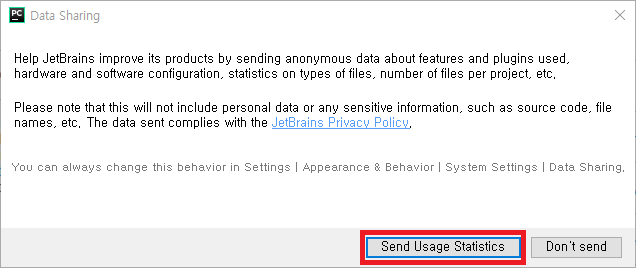 - 프로그램 사용 관련 통계 JetBrains 사에 제공