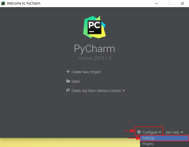 PyCharm을 실행합니다.