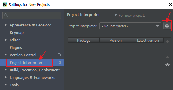 - Project Interpreter 클릭