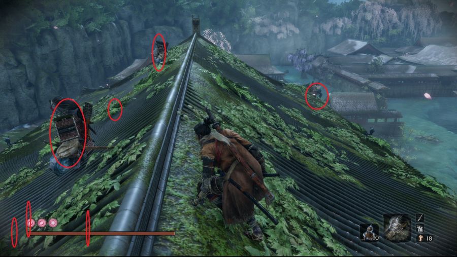 왼쪽 집을 넘어가 지붕을 올라가면 궁의 무사들이 나옵니다. 생각보다 움직임이 날래 까다로운 녀석들.