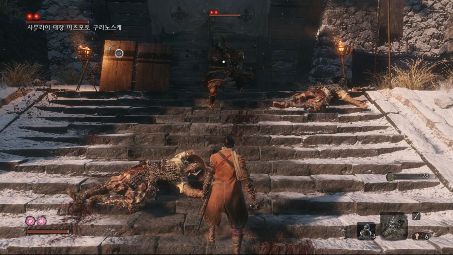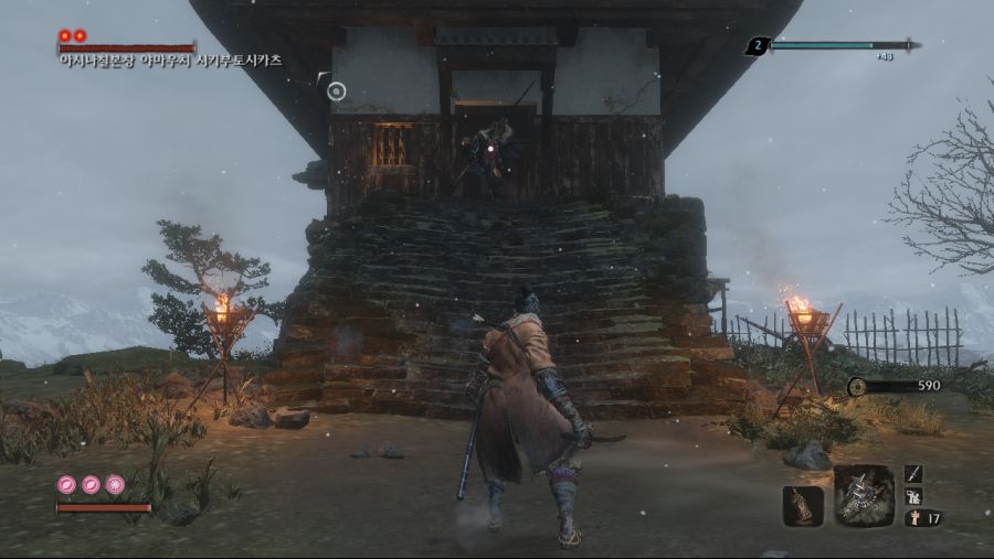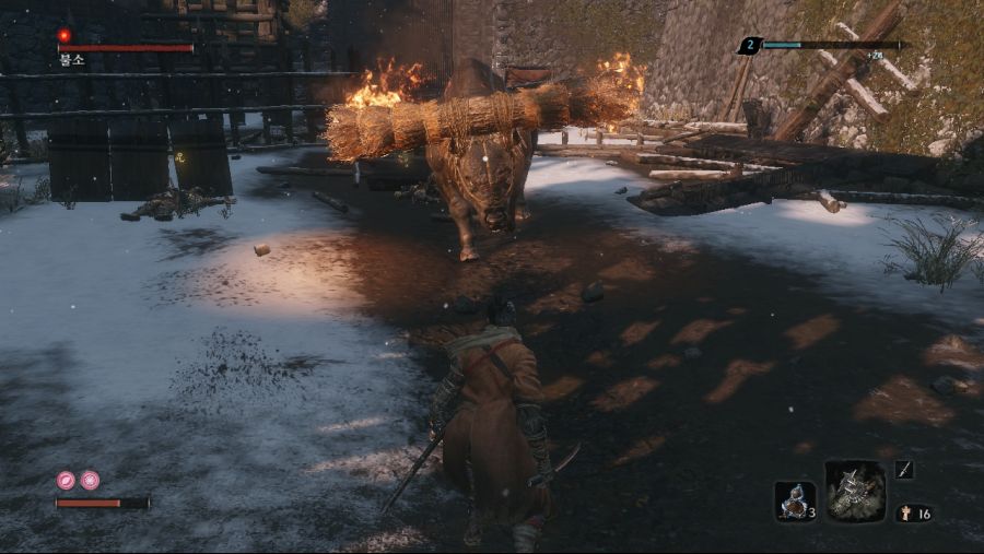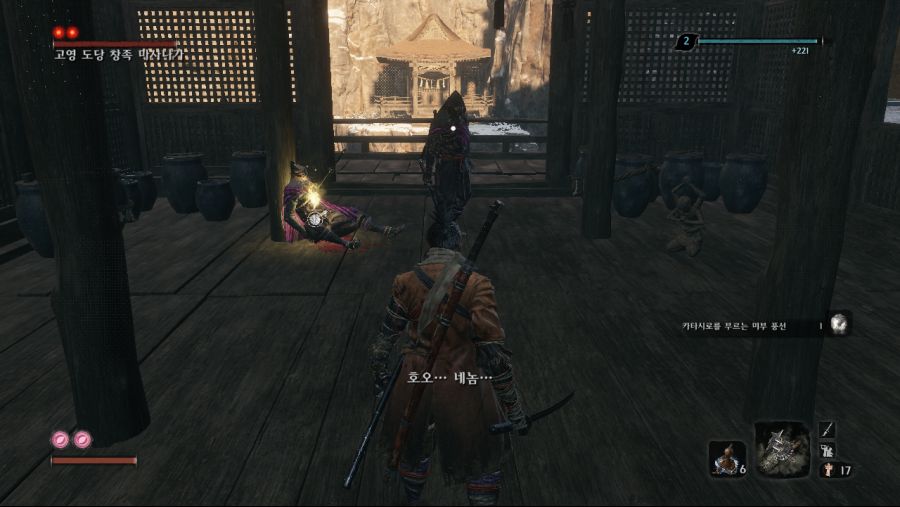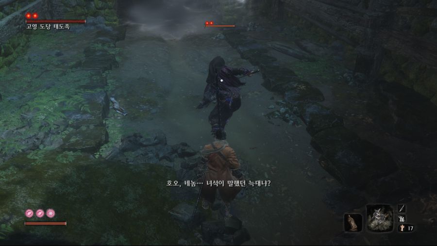 (이놈을 낙사로 죽이면 수주옥 안나옴.) 후반부 올빼미를 잡은 후 인간회귀 루트를 타셧다면 3년전 히라타영지에 처음보는 미니보스가 리젠됩니다. 기본 패턴은 대부분 닌자랑 같은데 가만히 냅두면 개새...아니