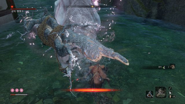 기본적으로 패턴은 사세 진스케랑 같지만 발도술 한번 걸리면 죽습니다. 많은 분들이 패링해도 데미지 들어온다고 착각하시는데 데미지 안들어옵니다.
