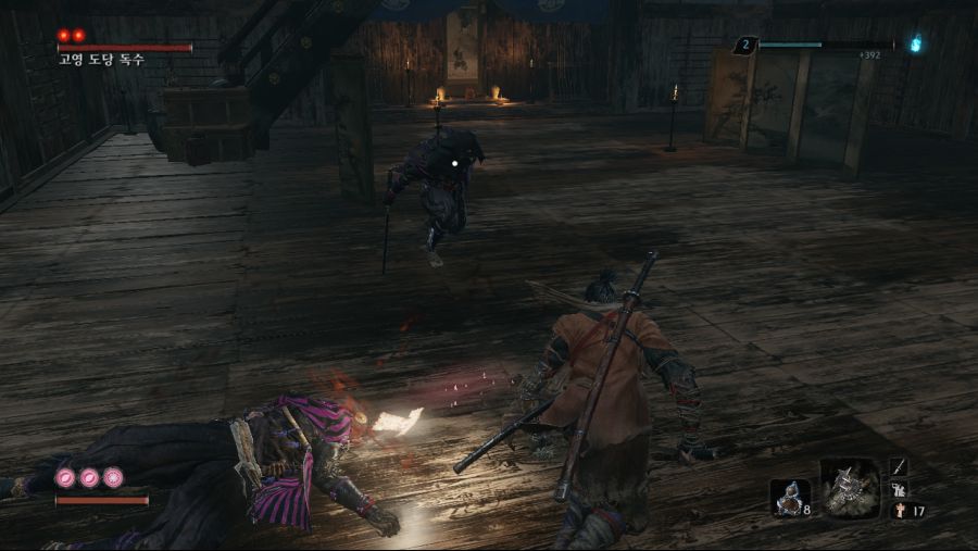 (이놈을 낙사로 죽이면 수주옥 안나옴.) 후반부 올빼미를 잡은 후 인간회귀 루트를 타셧다면 3년전 히라타영지에 처음보는 미니보스가 리젠됩니다. 기본 패턴은 대부분 닌자랑 같은데 가만히 냅두면 개새...아니