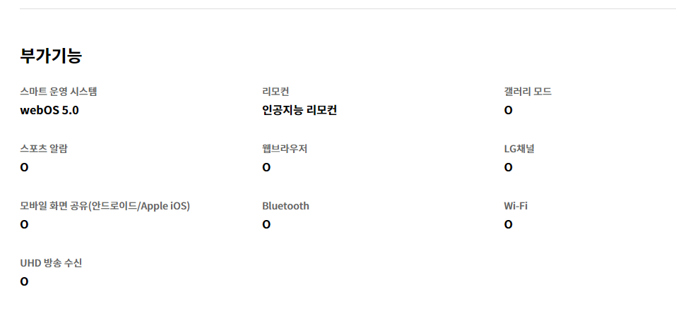 75NANO93KNB 제품의 공식스펙은 아래와 같다.