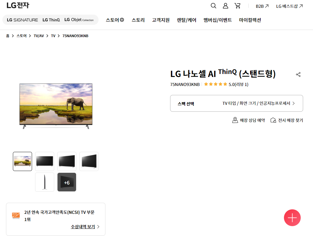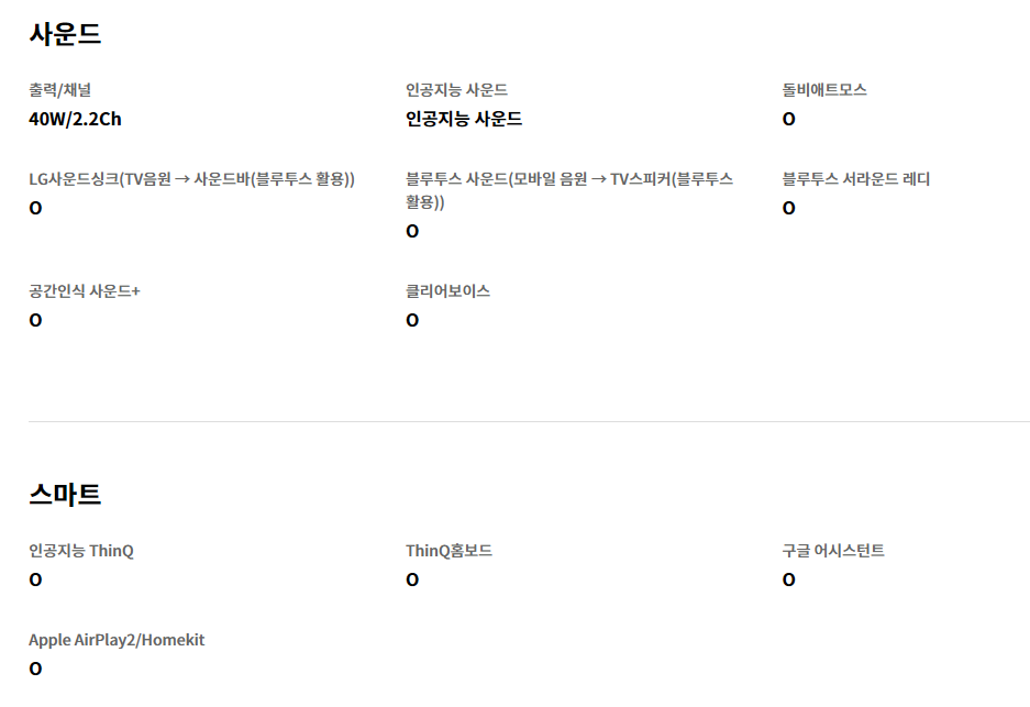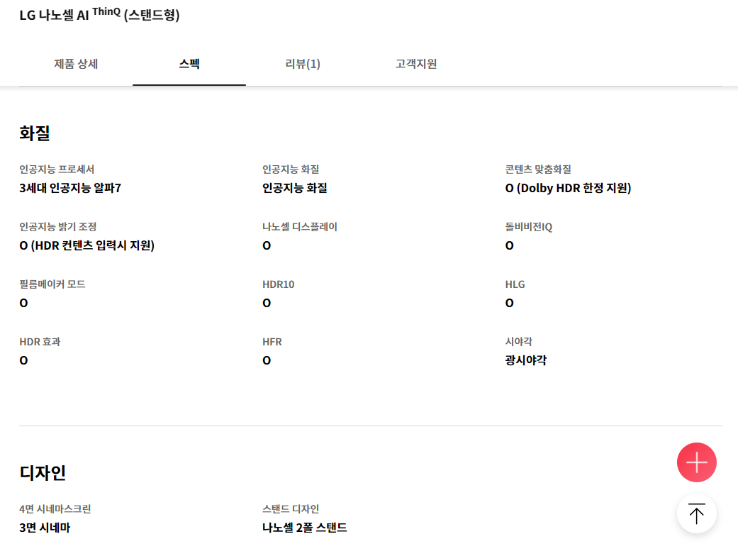 75NANO93KNB 제품의 공식스펙은 아래와 같다.