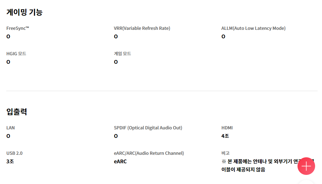 HDMI 2.1 슬롯이나 VRR 지원 등등이 동급의 삼성 제품을 압도한다.