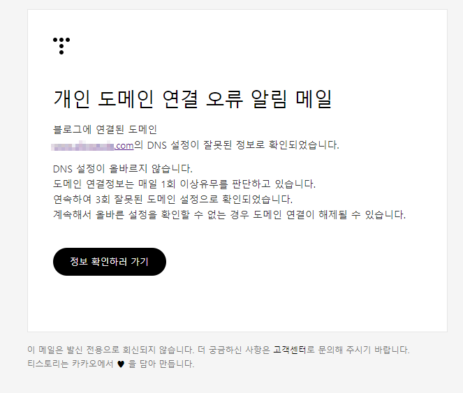 평소에 아무 문제가 없다가 2021년 6월 19일부터 21일까지 딱 3일 동안 티스토리가 아래 내용의 이메일을 보냈다.