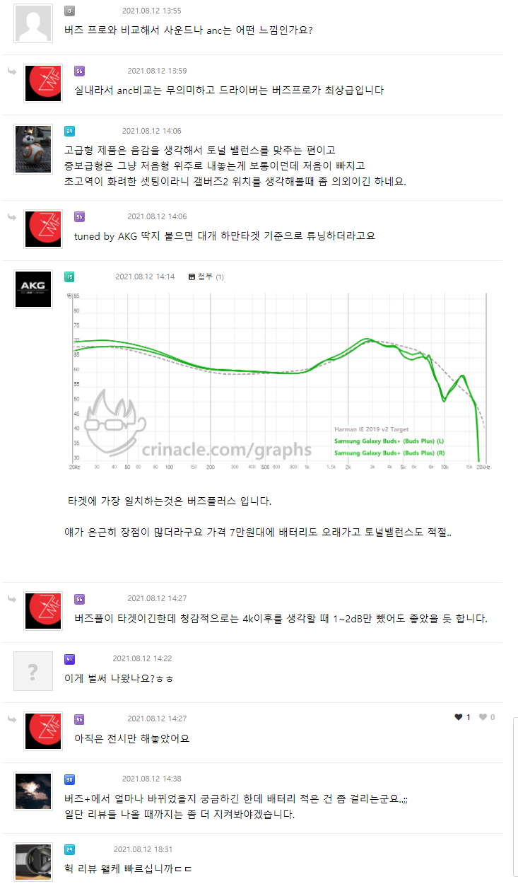 * 2021년 8월 24일, 삼성 공홈에서 미리 예약주문했던 제품이 도착했고 직접 테스트해보니 저음도 약간 약했지만 초고역대가 너무 약했다...;;; 청량한 보컬 소리를 완전히 뭉개버린 듯한 튜닝이었다. 와... 원가절감을 음질에서 할 줄이야...