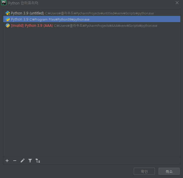 파이참에서도 쓰고 비주얼스튜디오에서도 쓰려면 인터프리터 환경이 가상환경VENV로 하는 것보다 실제 Python실행파일과 연관이 있는 폴더로 세팅하는 것이 유리할 거라는 판단이 든다.
