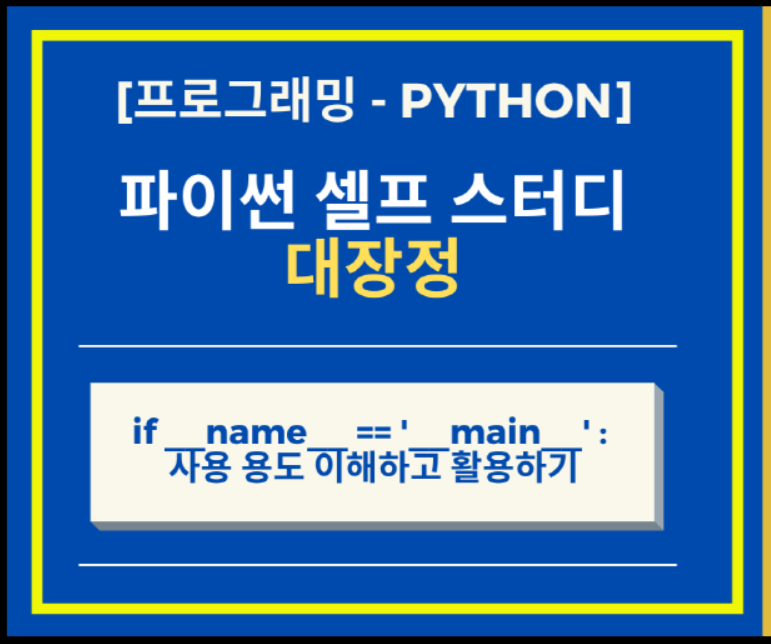 : 구문 자체가 조건 문인 것를 확인 하실 수 있습니다. 이 구문을 살펴 보면, "__name__" 항목이, "__main__"인지를 물어보는 구문입니다. 즉, 맞으면 실행하고, 틀리면 else 구문에 기재된 code를 실행하라는 것입니다. 그럼 간단하게 아래 code를 통해서 추가 설명 드리겠습니다.