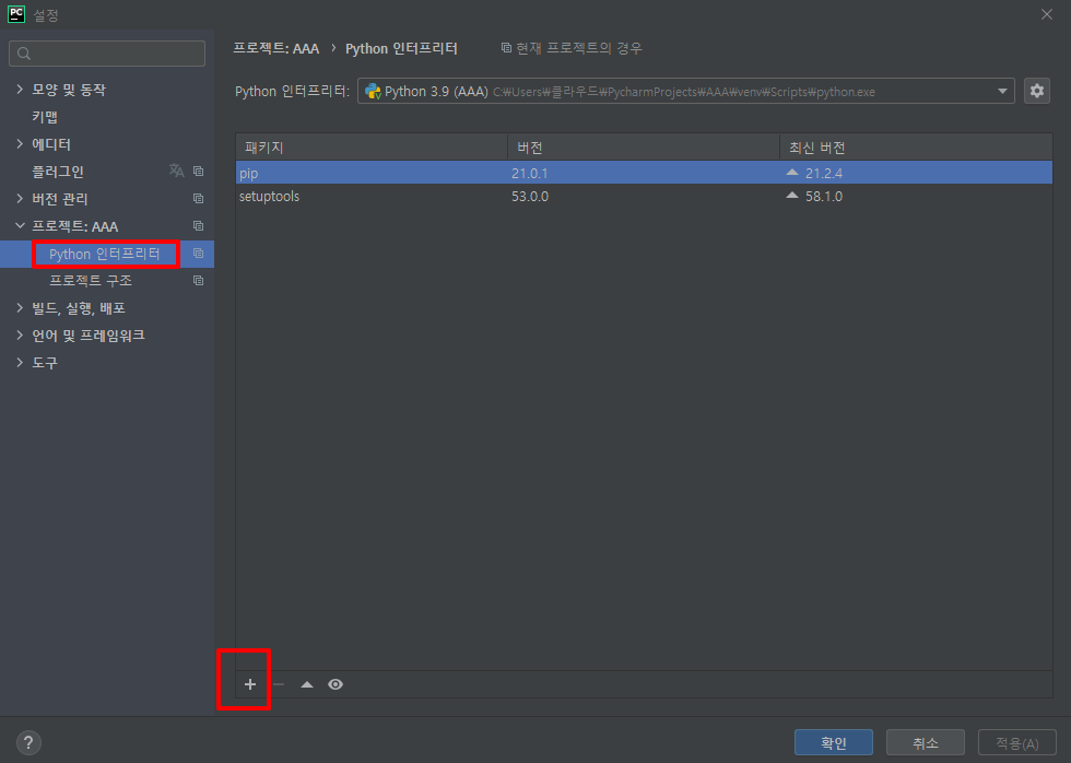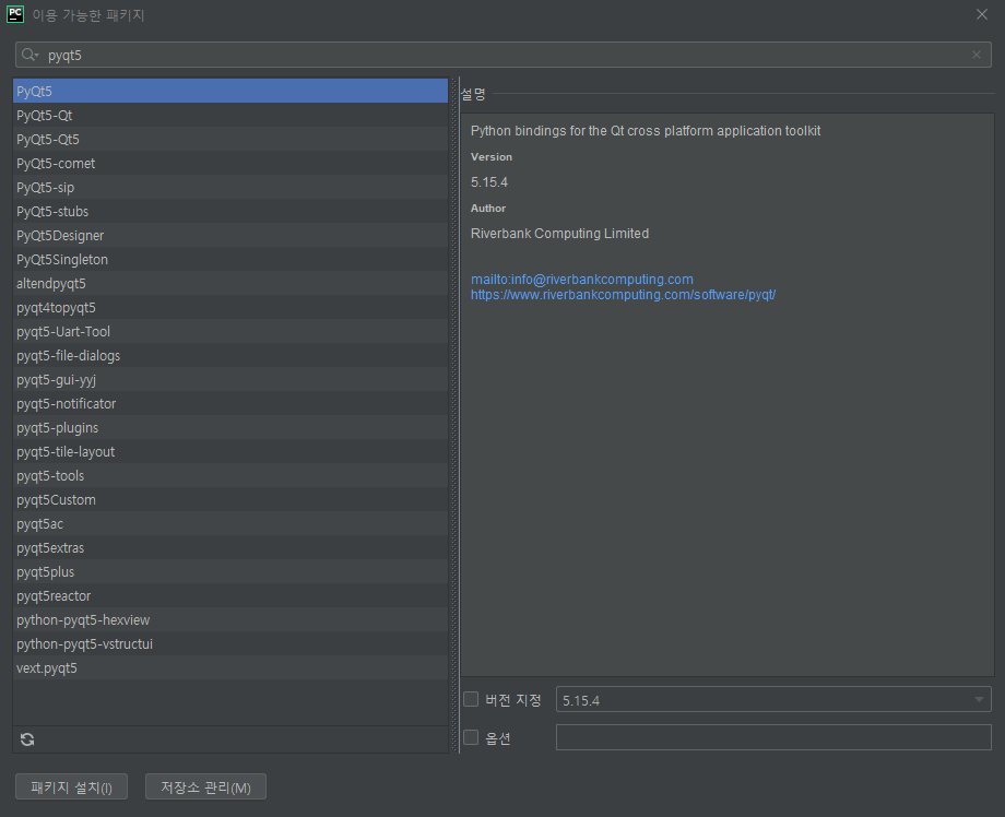 파이참에서 PyQt5를 설치하려면 파일>설정>프로젝트>Python인터프리터>+>PyQt5 검색>패키지 설치 순서대로 하면 된다.