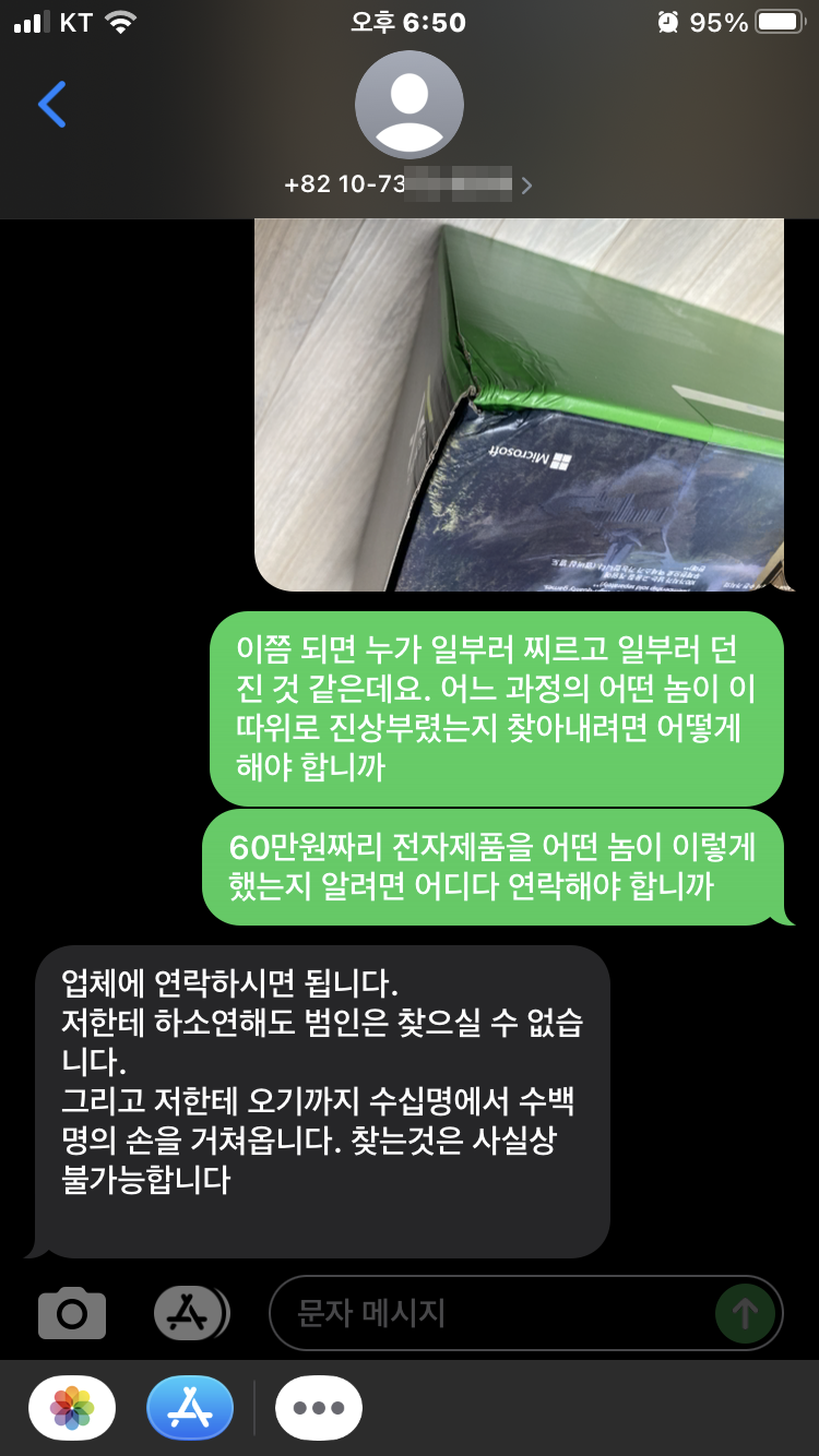상품을 배송받고 난 후 분노와 경악이 휘몰아쳤다.